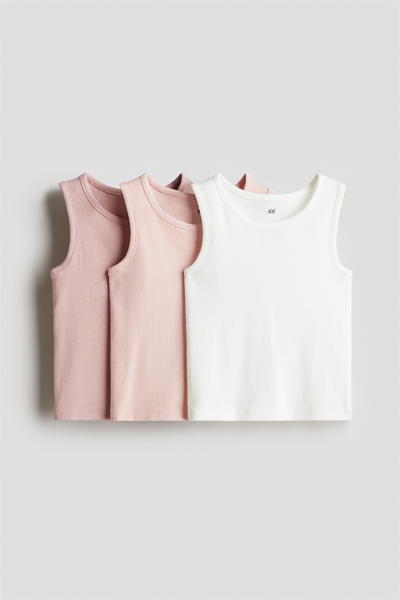 Майки из мягкого ребристого хлопкового джерси с окантовкой по вырезу горловины и проймам.