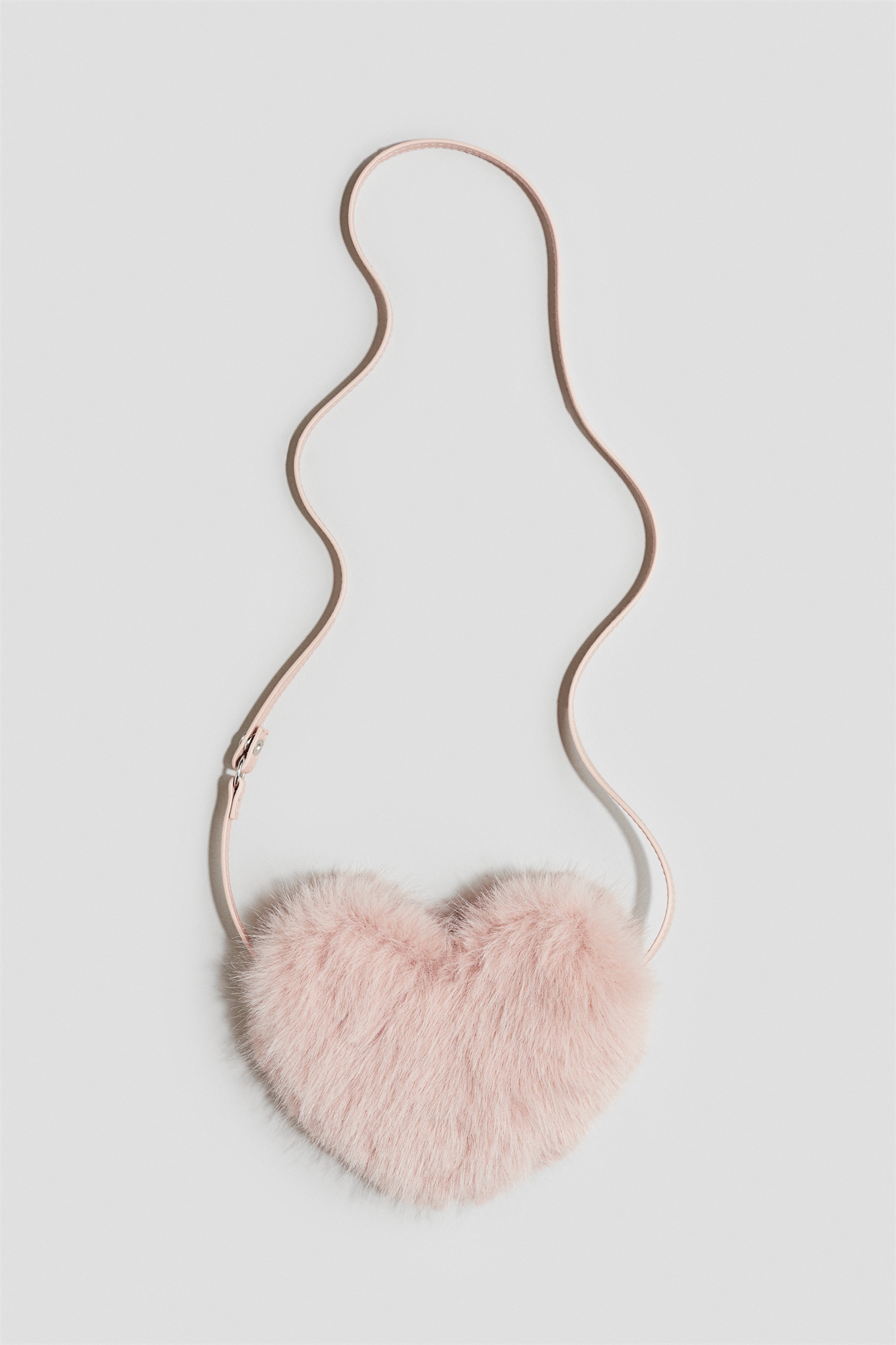 Сумка на плечо в форме сердца с застежкой на молнию сверху и узким плечевым ремнем с отрывной кнопкой на одном конце. На подкладке.