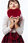 Сумка на плечо в форме сердца с застежкой на молнию сверху и узким плечевым ремнем с отрывной кнопкой на одном конце. На подкладке.