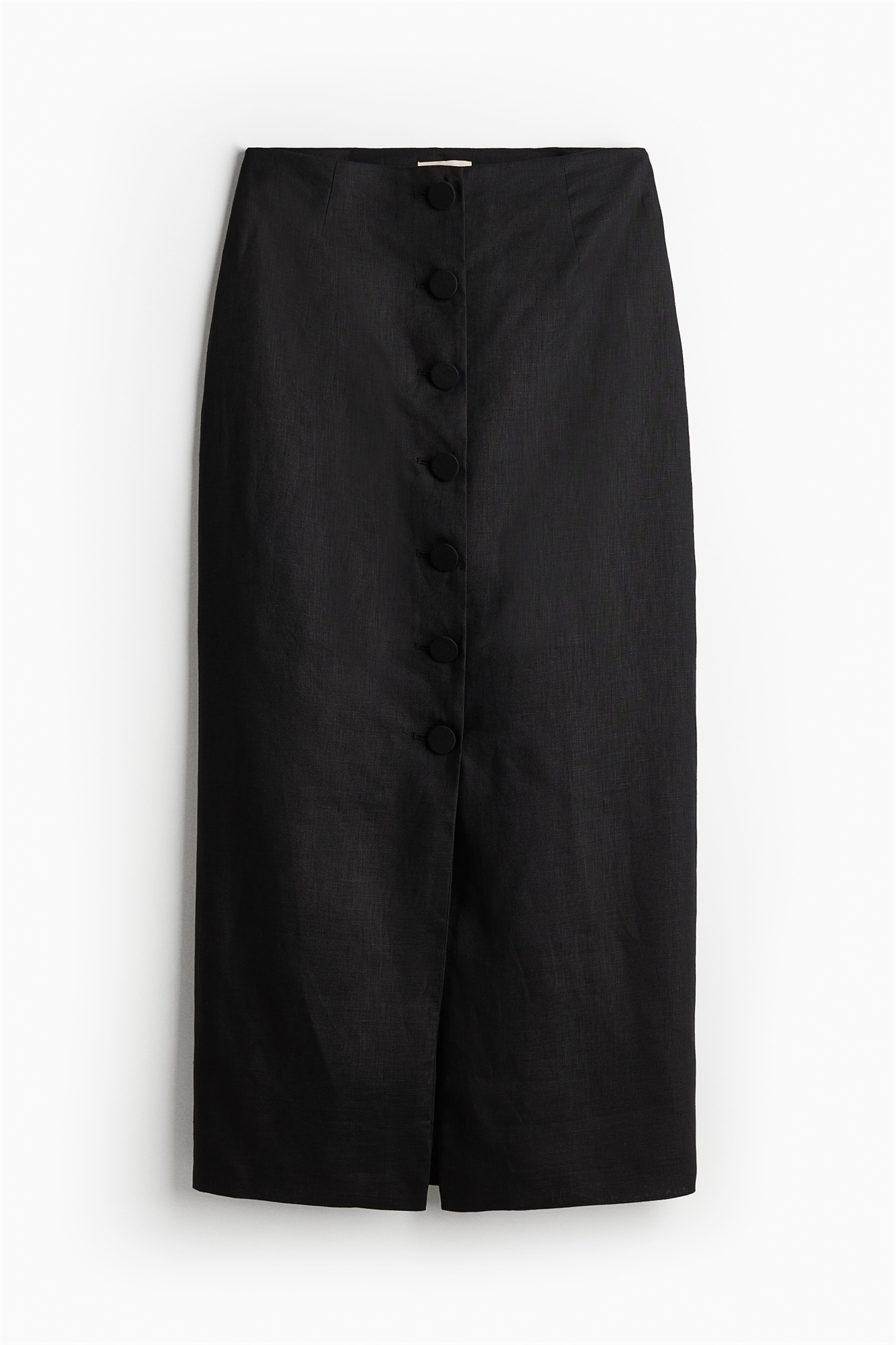 Длинная юбка из воздушного льна с талиевыми вытачками и пуговицами спереди. На подкладке.