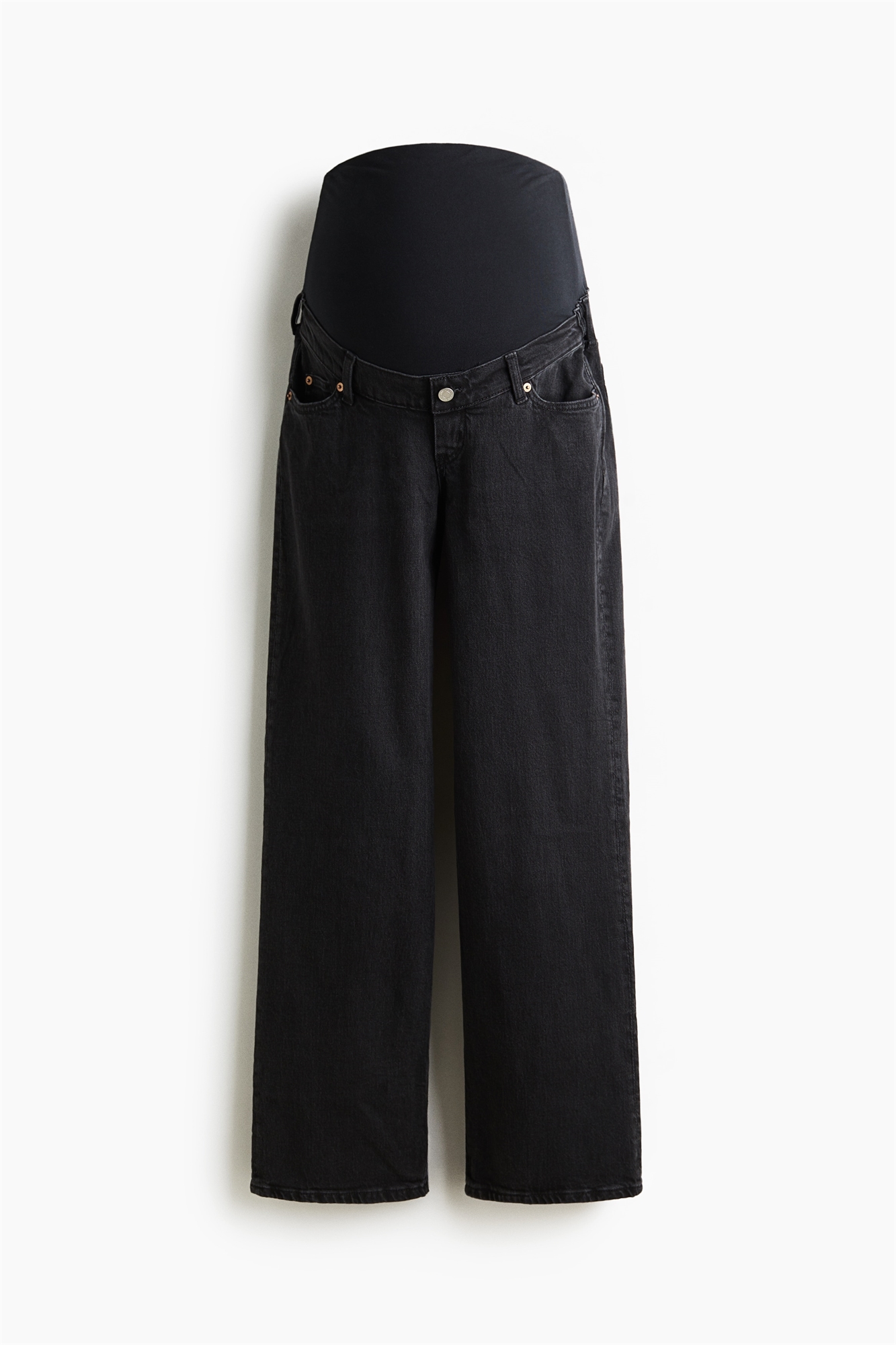 Джинсы с 5 карманами из хлопкового денима с легким стретчем для комфорта. Расслабленный крой с фальшивой ширинкой и пуговицей, эластичная отделка по бокам и широкие прямые ноги. Широкая панель из джерси на талии для лучшей посадки на животе.