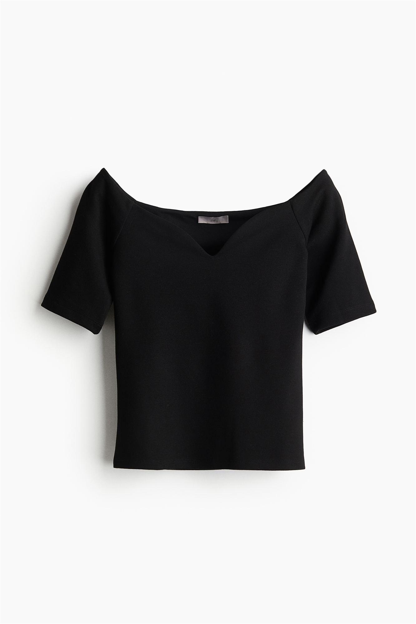 Облегающий топ без плеч из плотного трикотажа с вырезом в форме сердца и короткими рукавами. Частично на подкладке.