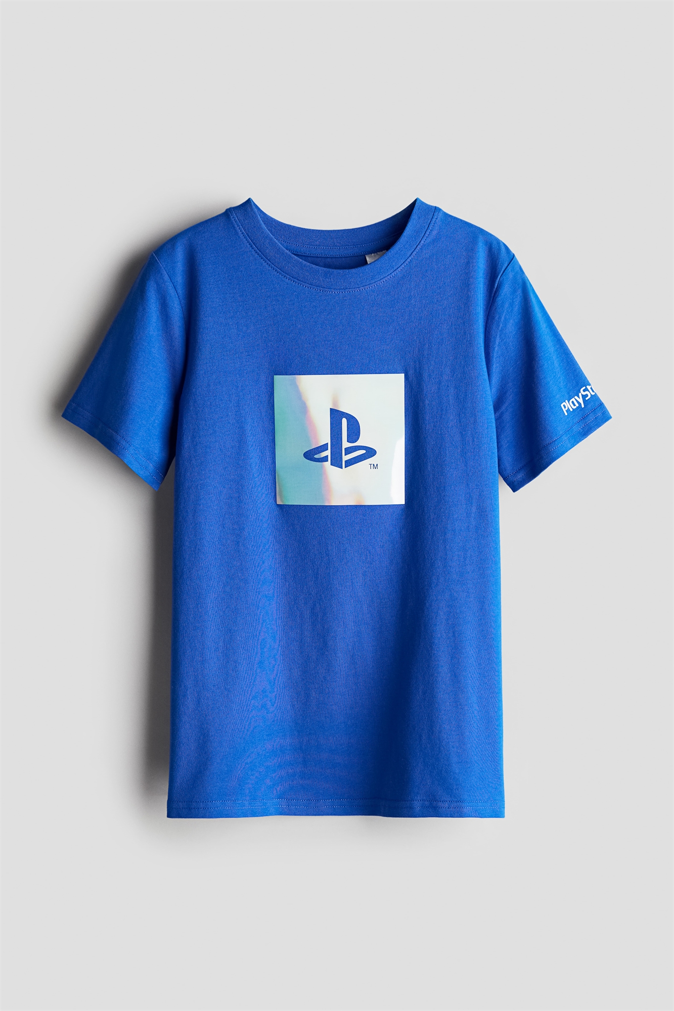 Классическая футболка из принтованного трикотажа с окантовкой по вырезу горловины и прямым покроем.