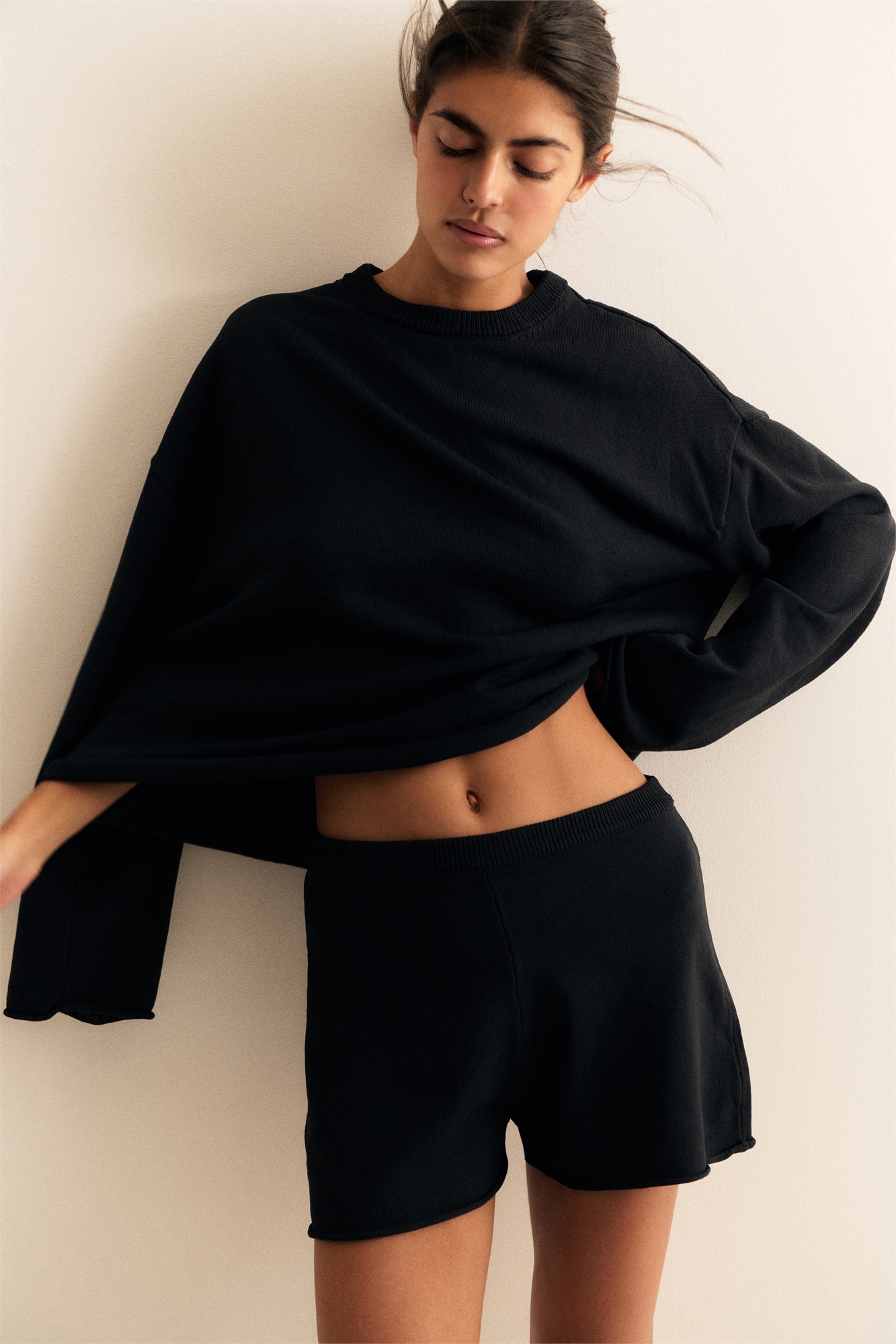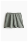 Шорты из мягкого трикотажа с эластичной тесьмой на талии и кантами на подоле.