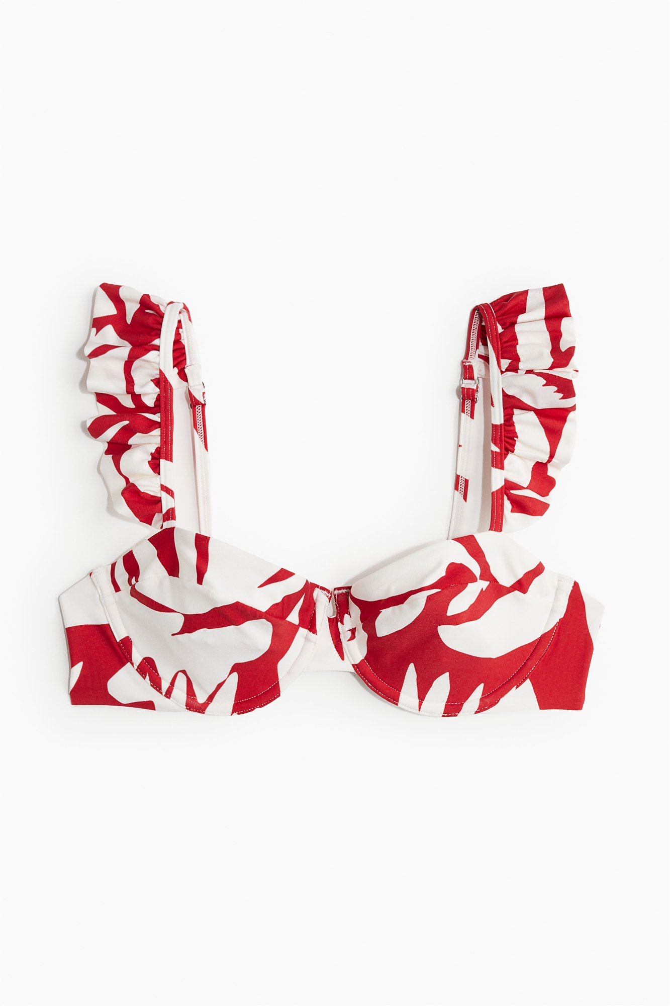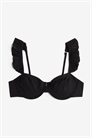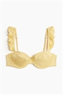 Бикини без подкладки, с регулируемыми бретелями со складками и чашечками с заниженной талией, которые придают бюсту естественную форму и обеспечивают легкую поддержку. Регулируемая застежка-крючок сзади.