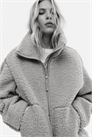 Куртка из мягкого тедди с отделкой из ткани с покрытием. Свободный крой, воротник-стойка, двусторонняя молния спереди и карманы-кенгуру. На подкладке.