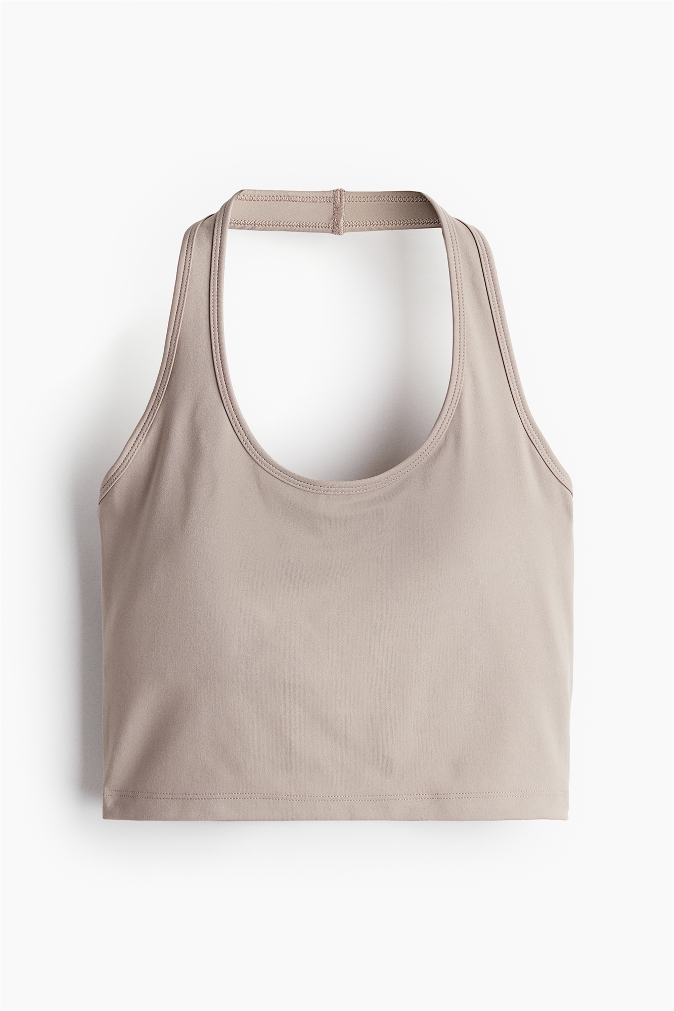 Обрезанный спортивный топ из функциональной ткани с добавлением DryMove™, которая отводит влагу от кожи, обеспечивая комфортную сухость во время движения. Облегающий крой с горловиной халтер. Встроенный спортивный бюстгальтер со съемными вставками для регулировки посадки и придания формы бюсту. Легкая поддержка, подходящая для тренировок низкой интенсивности.