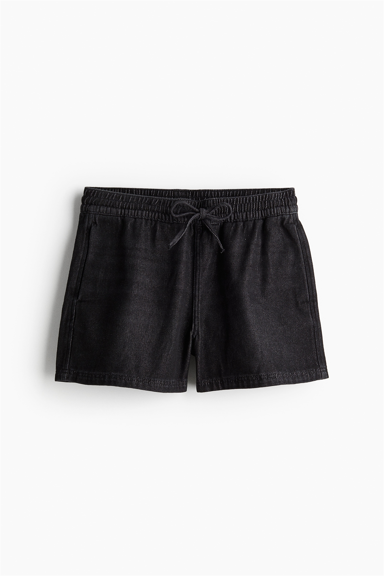 Шорты свободного кроя из жесткого денима с эластичным утягивающим поясом и неброскими боковыми карманами.