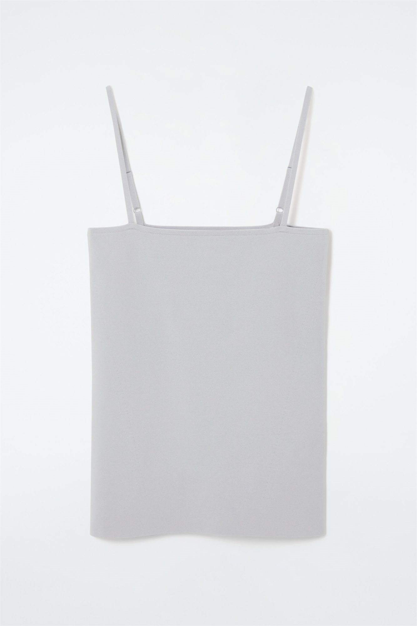 Для команды женской моды COS топы-бандо - одна из основ современного гардероба. Изготовленный из ребристой вискозной ткани, этот фасон имеет прямой вырез и узкие бретели, которые можно регулировать, чтобы создать индивидуальную посадку. Пастельный голубой цвет придает элегантность нейтральным нарядам. Зауженный крой Благодаря использованию переработанного нейлона мы сокращаем потребность в ограниченных природных ресурсах и уменьшаем выбросы парниковых газов Внешняя ткань: 53% вискозы, 45% переработанного полиамида (переработанный нейлон), 2% эластана. Детали исключены/Машинная стирка Длина по спинке в размере S = 59 см/Модель носит размер S