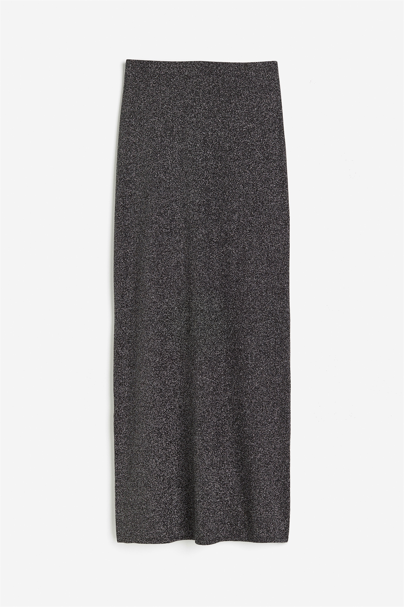 Длинная приталенная юбка из джерси-стрейч с блестящими нитями. Эластичная резинка на талии и прямой подол.