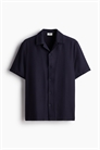 Рубашка с короткими рукавами из фактурного хлопкового полотна с курортным воротником, французским передом и прямым покроем. Регулярный крой для комфортной носки и классического силуэта.