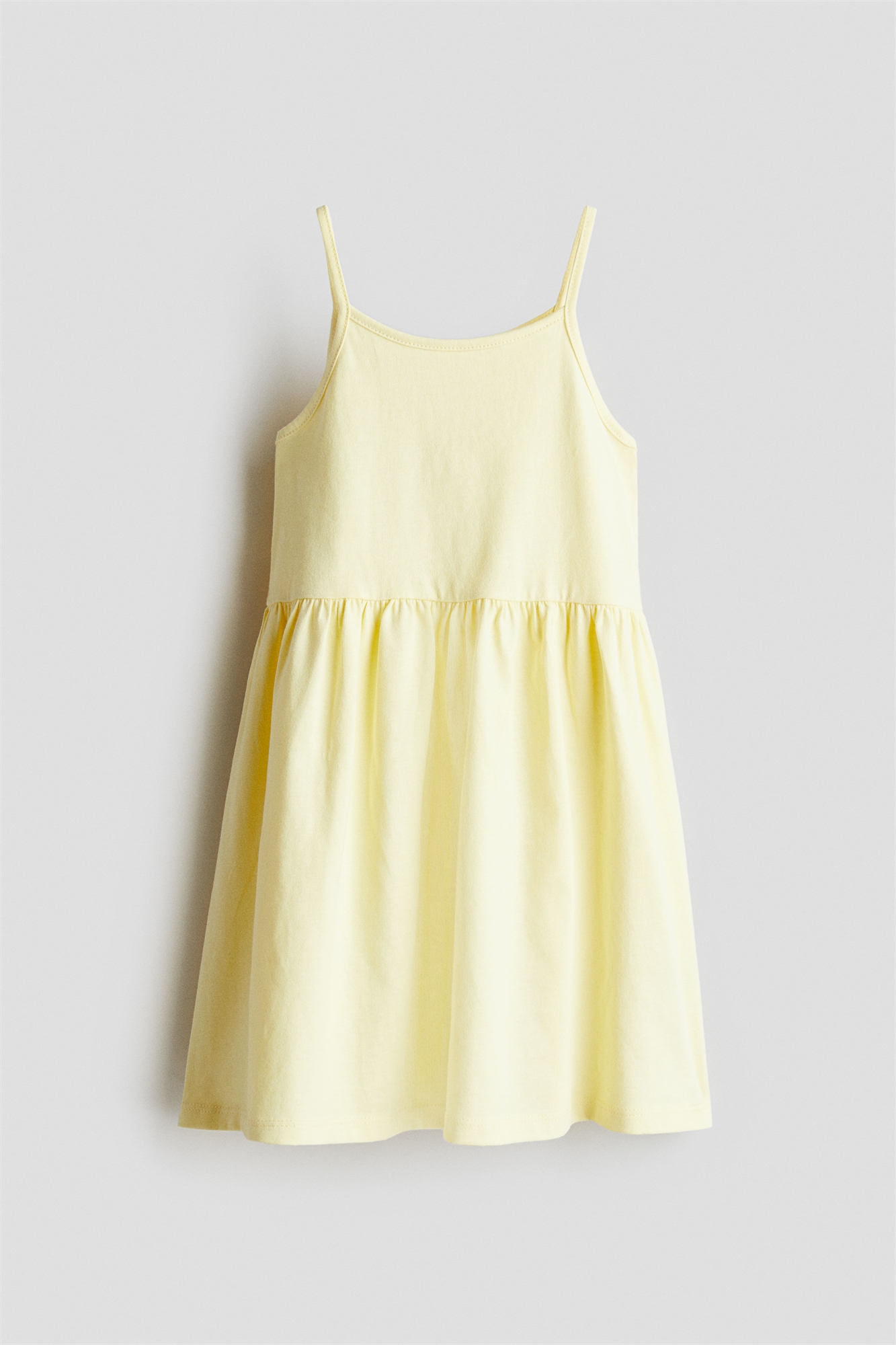 Платье без рукавов из мягкого хлопкового джерси с узкими бретелями и сборками на талии.