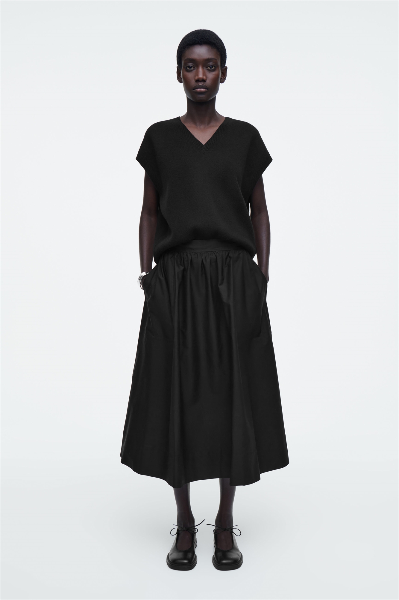 Эта юбка-миди, выполненная из хлопка в строгом черном цвете, имеет эластичный пояс, подол средней длины и пару карманов, в которые можно заправить руки. Наденьте ее с майкой и балетками. Регулярный крой Оболочка: 100% хлопок. Без учета отделки / Машинная стирка Длина по спинке для размера EU 36 составляет 80,2 см / Модель носит размер EU 36