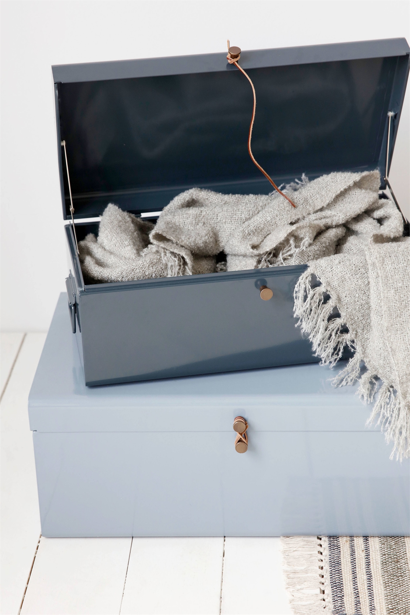 Красивый набор чемоданов от House Doctor изготовлен из стали. Набор состоит из двух больших чемоданов двух разных размеров. Они идеально подходят для хранения игрушек в игровой комнате, журналов, канцелярских принадлежностей и других мелочей, которые не должны валяться без дела. Этот набор идеально подходит для современного дома и может быть использован практически в каждой комнате вашего дома. Набор представляет собой комбинацию двух красивых чемоданов синего цвета. Оба чемодана закрываются с помощью небольшого кожаного шнура, который также хорошо контрастирует со сталью. Большой металлический чемодан выполнен в потрясающем светло-голубом цвете, в то время как чемодан поменьше имеет приятный темно-синий цвет. Используйте их в качестве простой детали вашего декора. S:, длина: 52 см, ш: 26 см, в: 20 см, L:, длина: 60 см, ш: 36 см, в: 24 см.