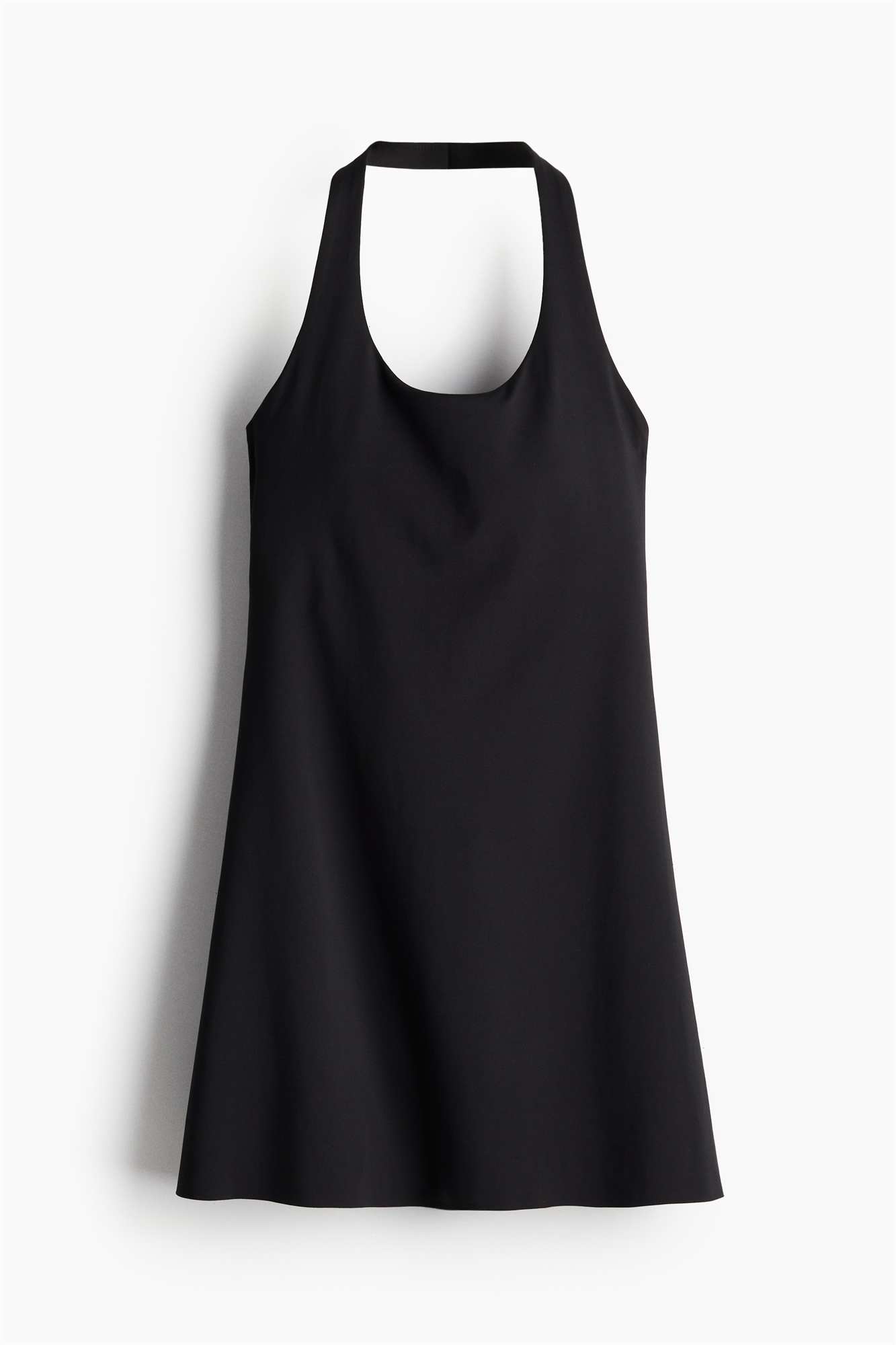 Короткое спортивное платье из функциональной ткани DryMove™, которая отводит влагу от кожи, обеспечивая комфортную сухость во время движения. Облегающий крой с горловиной халтер. Встроенный спортивный бюстгальтер со съемными вставками для регулировки посадки и придания формы бюсту. Легкая поддержка, подходящая для тренировок низкой интенсивности.