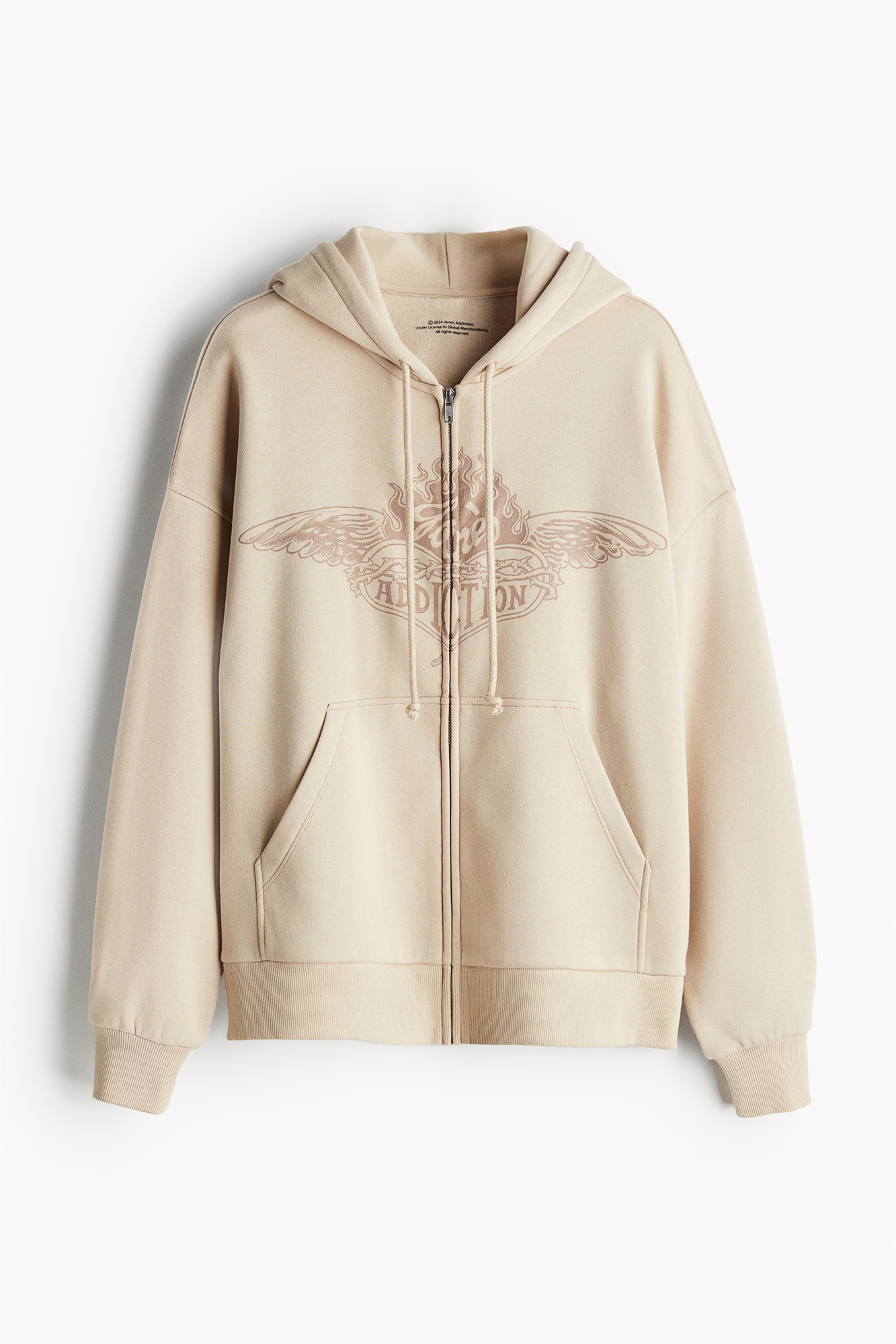 Толстовка на молнии с рисунком из толстовочной ткани с мягким начесом внутри. Силуэт оверсайз с двухслойным капюшоном на завязках, застежкой-молнией спереди, спущенными плечами и длинными рукавами. Манжеты и подол в рубчик.