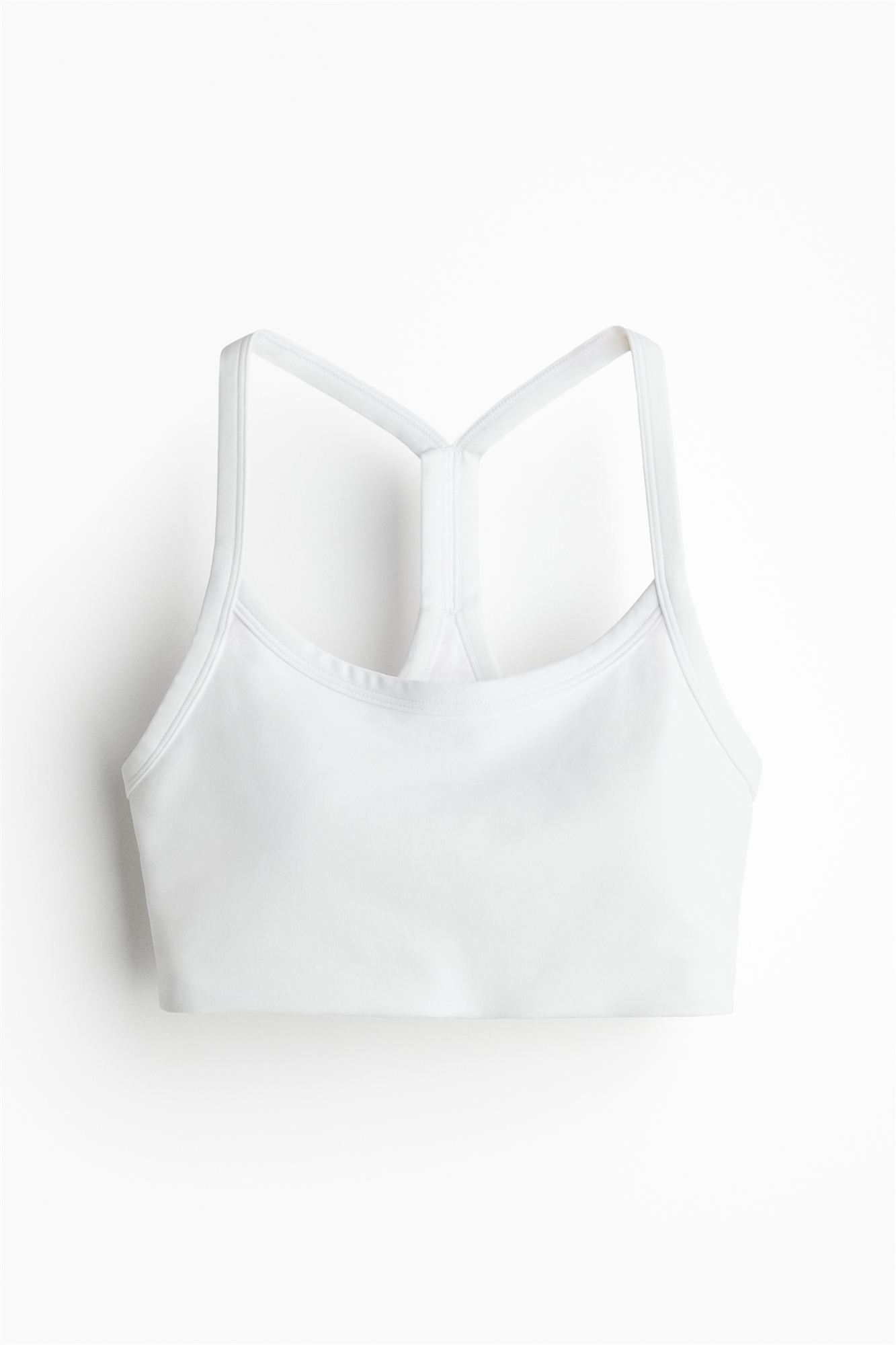 Спортивный бюстгальтер из супермягкой функциональной ткани с добавлением DryMove™, которая отводит влагу от кожи, обеспечивая комфортную сухость во время движения. Узкие бретели, сходящиеся на спине, и чашечки на подкладке со съемными вкладышами для регулировки посадки и придания формы бюсту. Эластичная вставка по подолу. Средняя поддержка, подходящая для тренировок умеренной интенсивности.