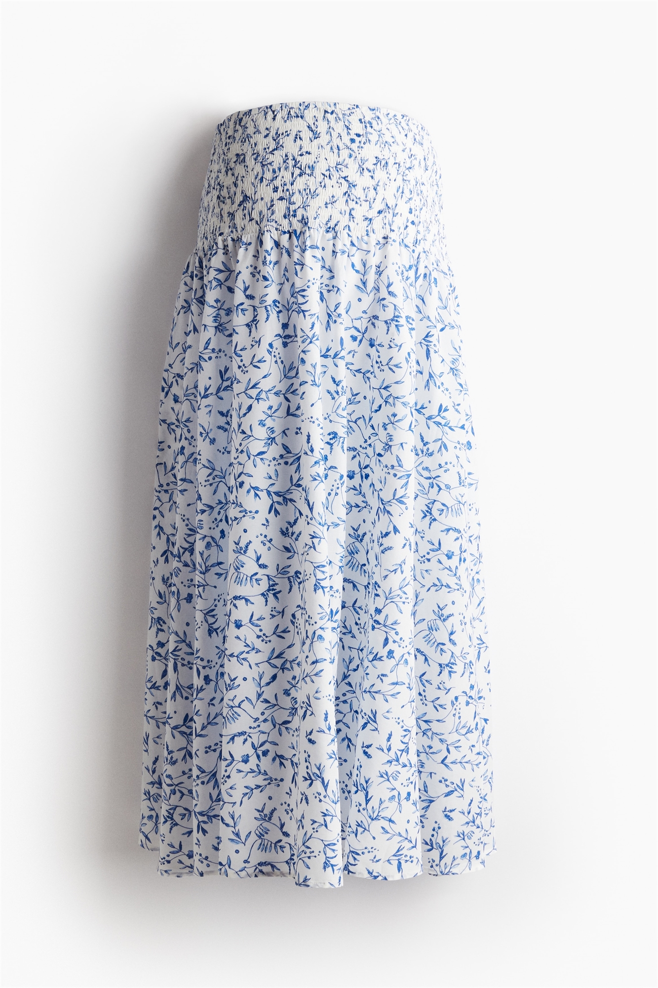 Длинная юбка А-линии из ткани с широким поясом-планкой для комфортной посадки во время и после беременности. Без подкладки.
