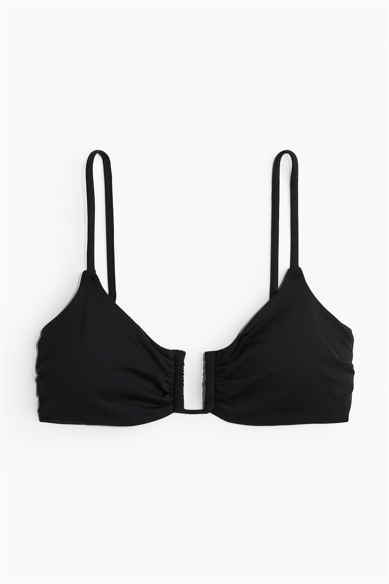 Бикини на подкладке, без проводов, с U-образной проволокой по центру бюста и чашечками со съемными вкладышами, придающими форму бюсту и обеспечивающими хорошую поддержку. Регулируемые бретели и металлическая застежка сзади.