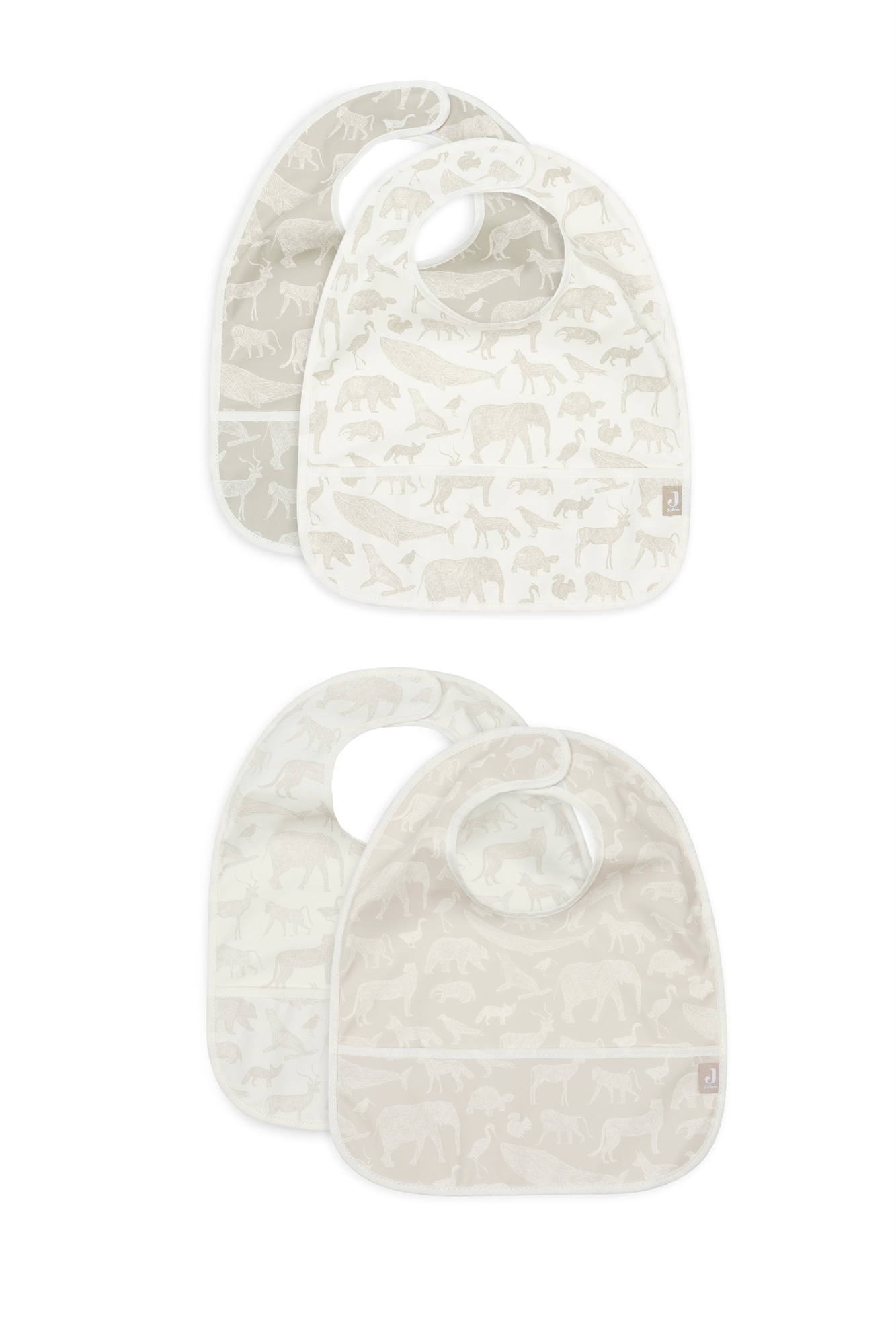 Нагрудники всегда практичны! С того момента, как ваш малыш съест свой первый кусочек, и до трех лет нагрудник будет очень полезен. Нагрудник защищает красивую одежду вашего любимца, так что после еды ребенок по-прежнему выглядит великолепно. Нагрудник водонепроницаем, имеет поддон для капель, чтобы пища не попала в рот, и практичную застежку-липучку на шее. Милый принт на этом нагруднике выполнен в тематике Miffy, и его можно узнать по изображениям Миффи и Снаффи. Нагрудник упакован в упаковку по 4 штуки и доступен в цветах оливково-зеленый и нуга.