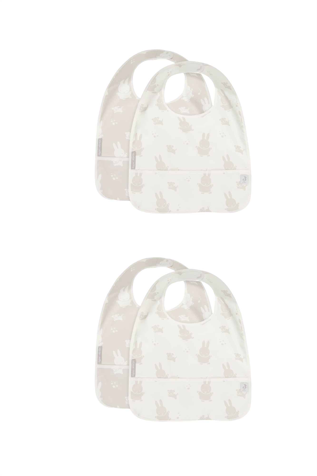 Нагрудники всегда практичны! С того момента, как ваш малыш съест свой первый кусочек, и до трех лет нагрудник будет очень полезен. Нагрудник защищает красивую одежду вашего любимца, так что после еды ребенок по-прежнему выглядит великолепно. Нагрудник водонепроницаем, имеет поддон для капель, чтобы пища не попала в рот, и практичную застежку-липучку на шее. Милый принт на этом нагруднике выполнен в тематике Miffy, и его можно узнать по изображениям Миффи и Снаффи. Нагрудник упакован в упаковку по 4 штуки и доступен в цветах оливково-зеленый и нуга.