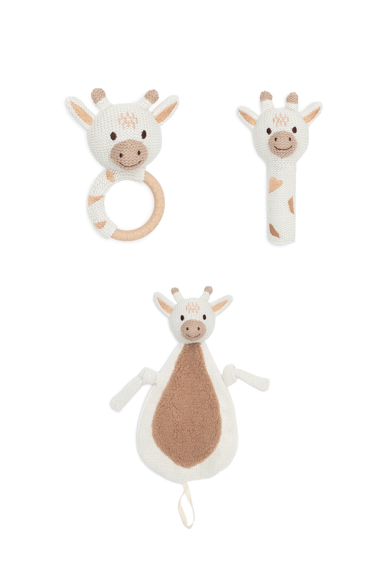 Этот красивый набор с жирафом состоит из трех мягких слоников. Прорезыватель успокаивает боль, а также может использоваться для игры, так как на вязаной голове есть маленькие бубенчики. Погремушка также содержит маленькие колокольчики, которые будут развлекать вашего малыша часами. Побалуйте своего любимца мегамягким плюшевым одеялом. Животик зверька сделан из очень мягкого флиса, а спинка - из тонкого махрового полотенца. Благодаря петельке слинг легко крепится к кукле. Осталось только выбрать жирафа, лисенка или медвежонка.