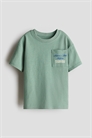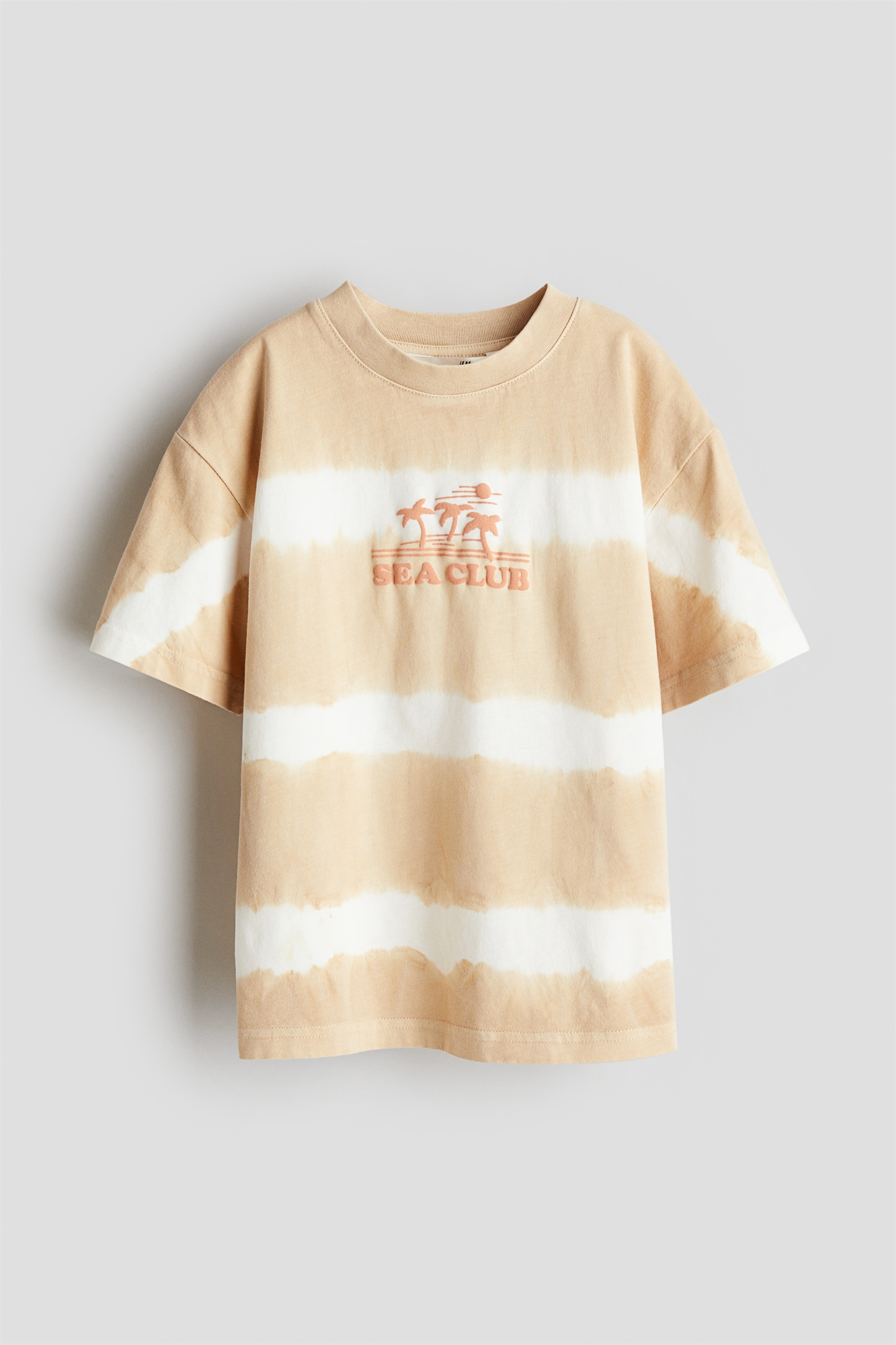 Свободная футболка из мягкого хлопкового джерси с мотивом спереди. Ребристая отделка по вырезу горловины и спущенные плечи.