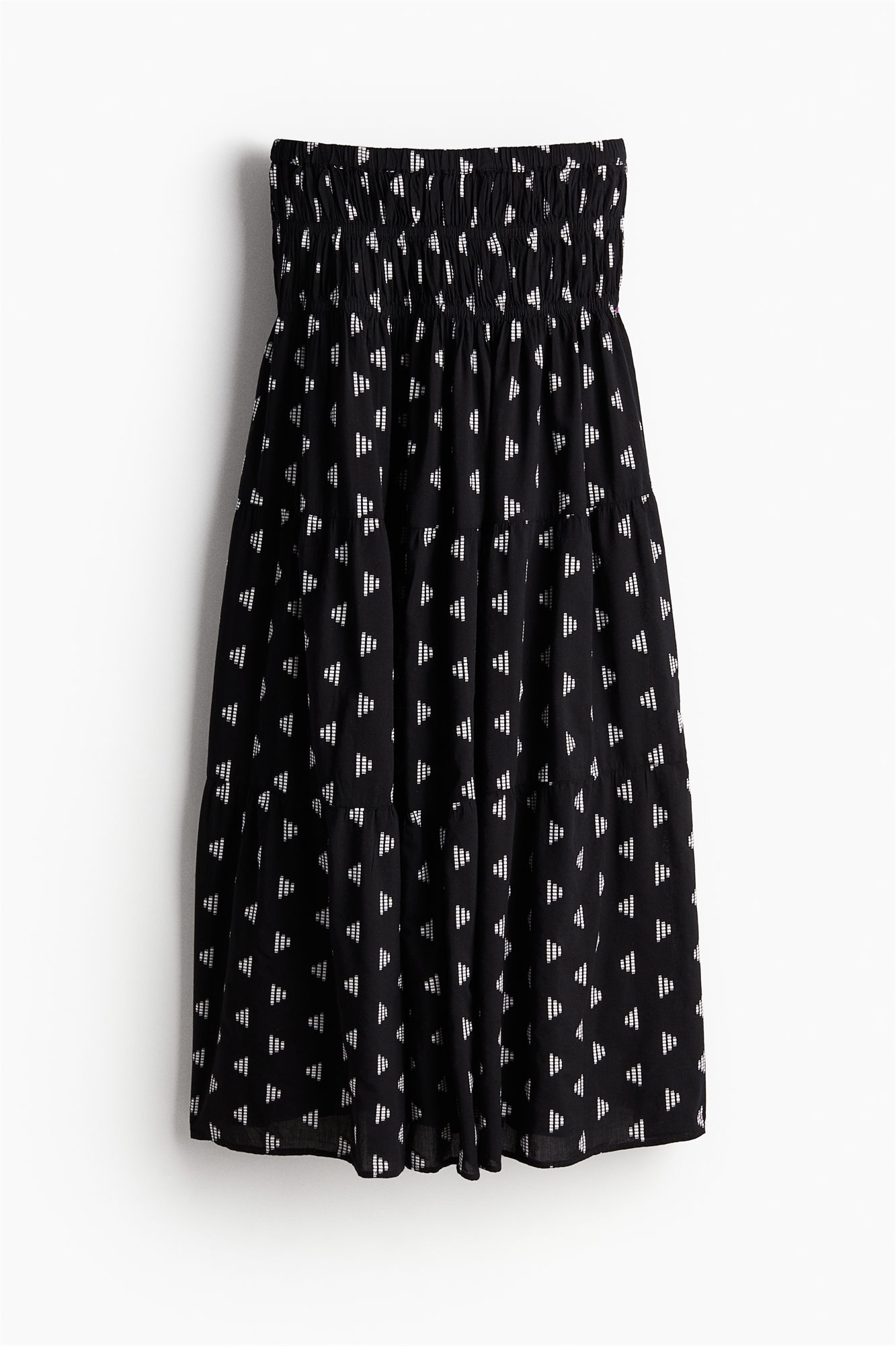 Юбка-макси из хлопка и модала с вышитым узором. Высокая талия с закрытой резинкой и двумя рядами узкой резинки для приталенного эффекта. Ярусы на юбке для придания объема. Без подкладки.