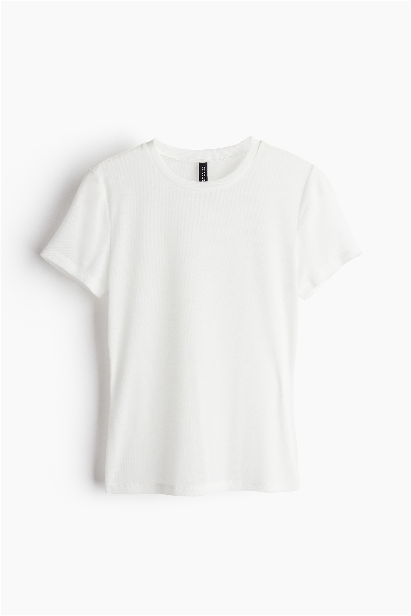Короткая приталенная футболка из мягкого, гладкого трикотажа.