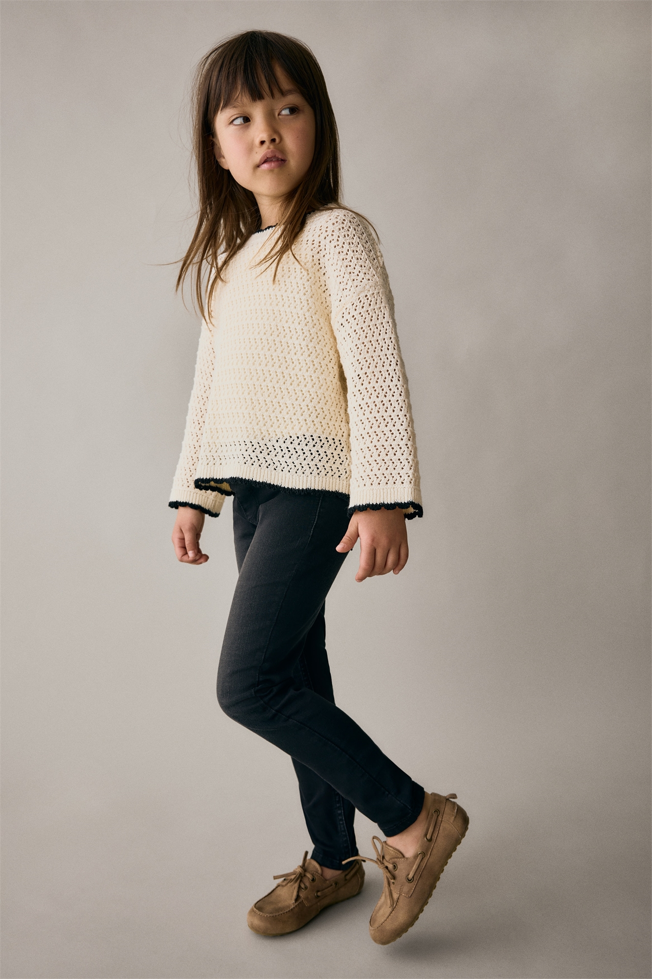 Леггинсы из стиранного денима стретч с эластичной резинкой на талии, фальшивой ширинкой, фальшивыми передними и настоящими задними карманами.