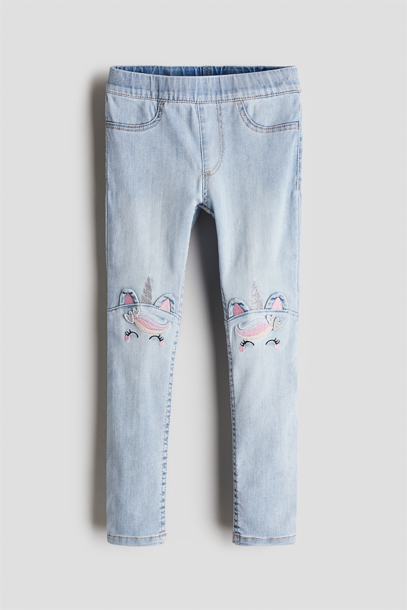 Джеггинсы из моющегося денима стретч с зауженной посадкой по бедрам, ляжкам и штанинам. Легкая посадка, эластичный пояс, фальшивая ширинка и фальшивые передние карманы.