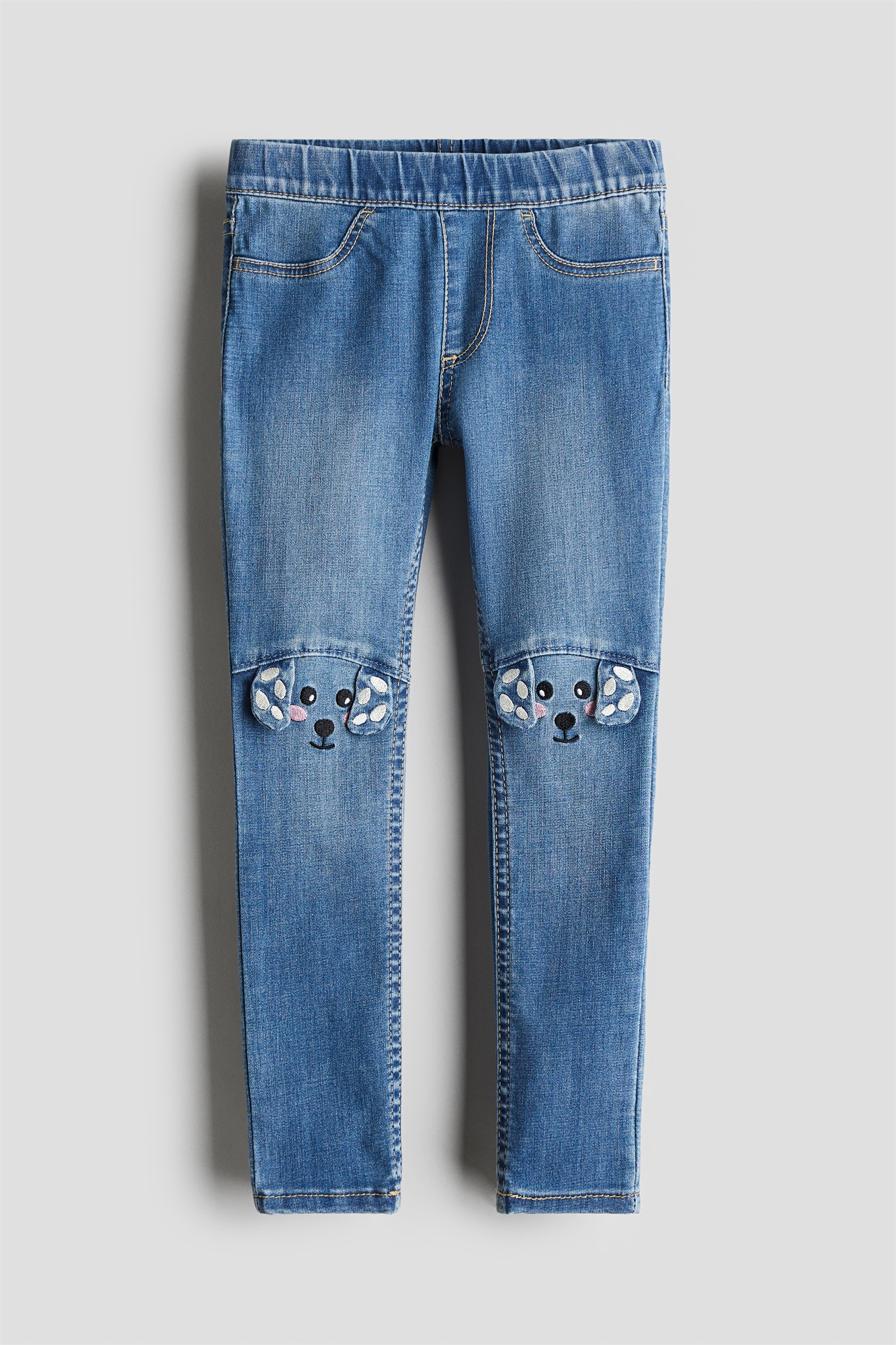 Джеггинсы из моющегося денима стретч с зауженной посадкой по бедрам, ляжкам и штанинам. Легкая посадка, эластичный пояс, фальшивая ширинка и фальшивые передние карманы.