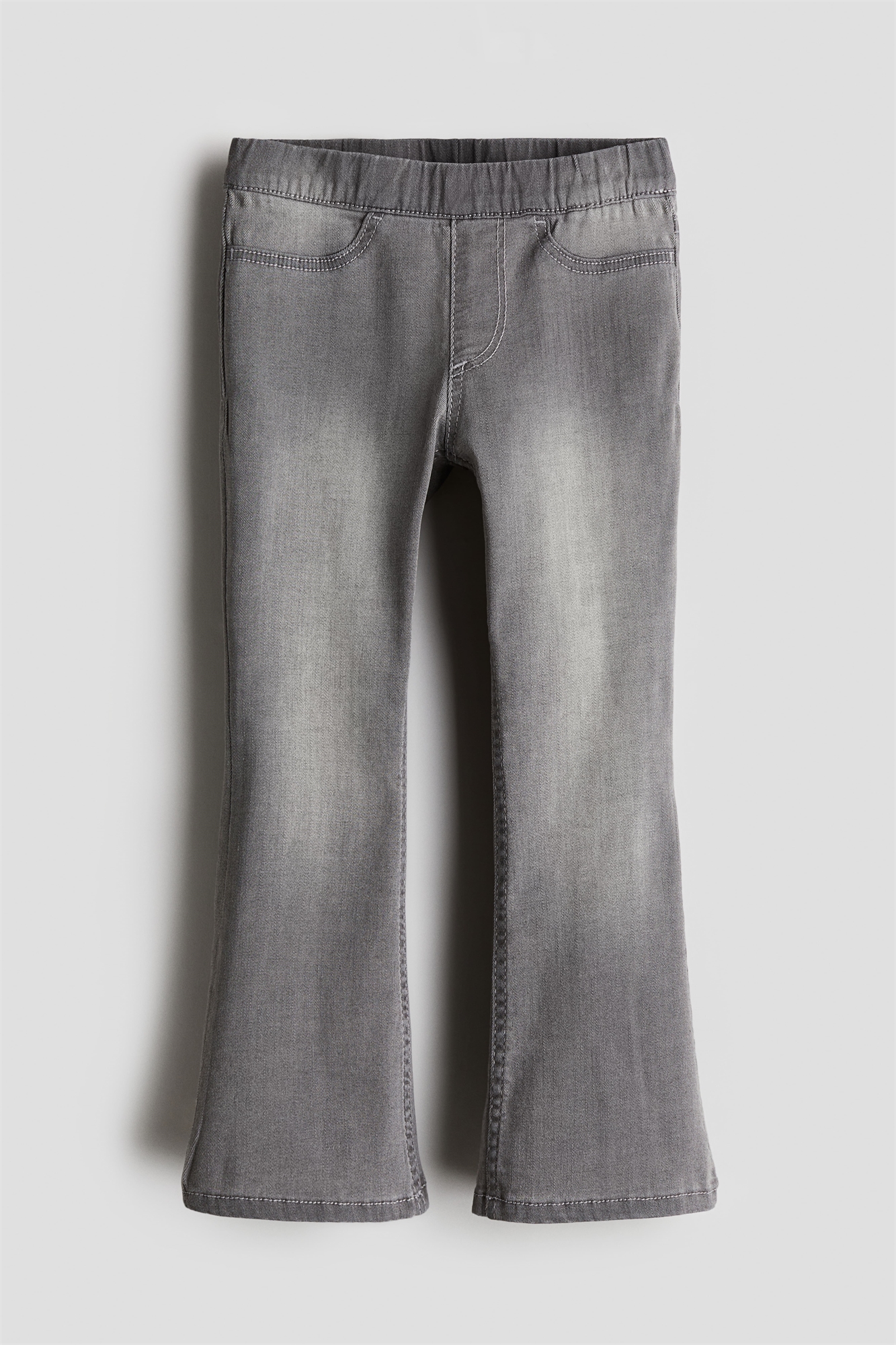 Джинсы из эластичного денима суперстрейч для максимальной подвижности. Зауженный крой по бедрам и бедрам с расклешенными ногами. Эластичная резинка на талии, фальшивая ширинка, фальшивые передние карманы и настоящие задние карманы.