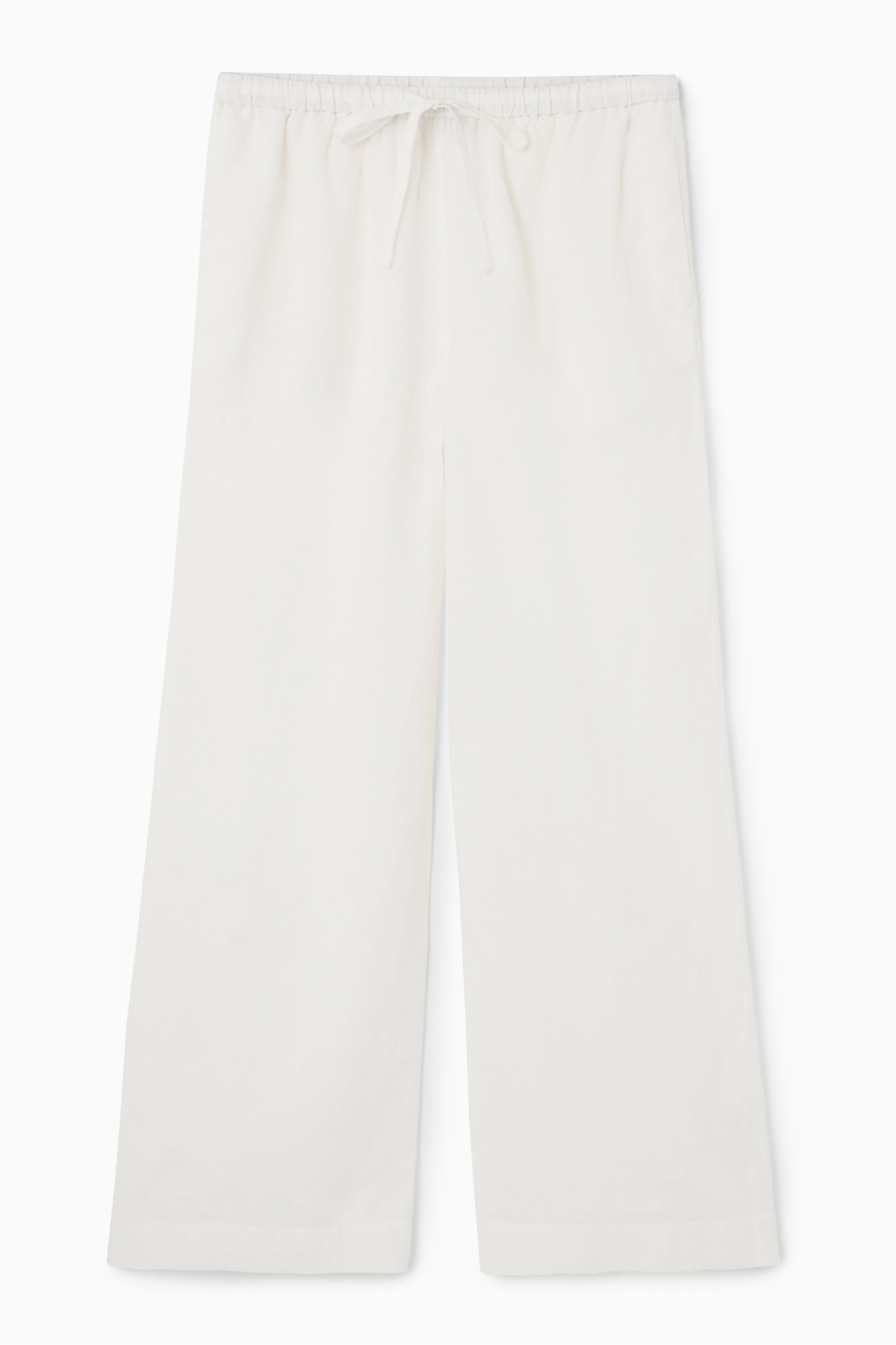 Эти непринужденные брюки, выполненные в хрустящем белом цвете, с утягивающейся талией и широкими штанинами, на которые можно надеть сандалии. Легкая ткань из смеси льна и хлопка делает их естественным выбором для теплых месяцев - особенно в сочетании с подходящей блузкой. Свободный крой, полная длина Боковые швы и накладные карманы Материал: 53% льна, 47% хлопка. Подкладка: 100% хлопок. Без учета отделки / Машинная стирка Внутренняя длина штанины размера EU 36 составляет 76 см / Модель носит размер EU 36