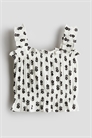 Топ без рукавов из сиреневой ткани с оборками. Широкие бретели на плечах с эластичными вставками и отделка по верху и талии. Аккуратный расклешенный подол с оборкой.