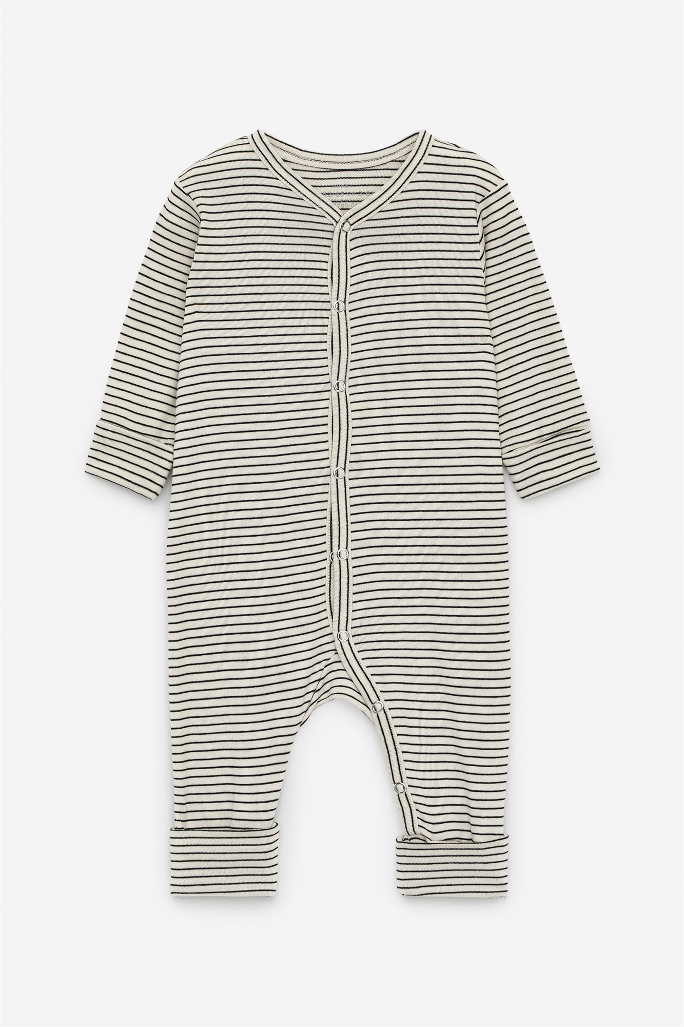 Пижама с длинными рукавами из мягкой хлопковой ткани джерси. Застежка на пуговицы и манжеты со складками на рукавах и ногах. Обычный крой.