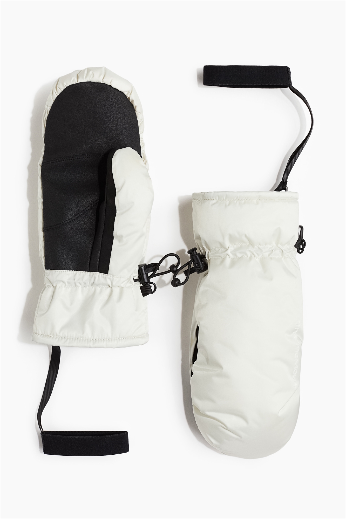 Лыжные варежки с мягкой подкладкой из водоотталкивающей функциональной ткани ThermoMove™, которая сохраняет тепло при понижении температуры. Эластичный шнурок с ограничителем на запястьях и пластиковой застежкой-крючком для фиксации варежек. Внутренние ремешки на запястьях в виде браслетов помогают избежать падения или потери варежек. На подкладке.