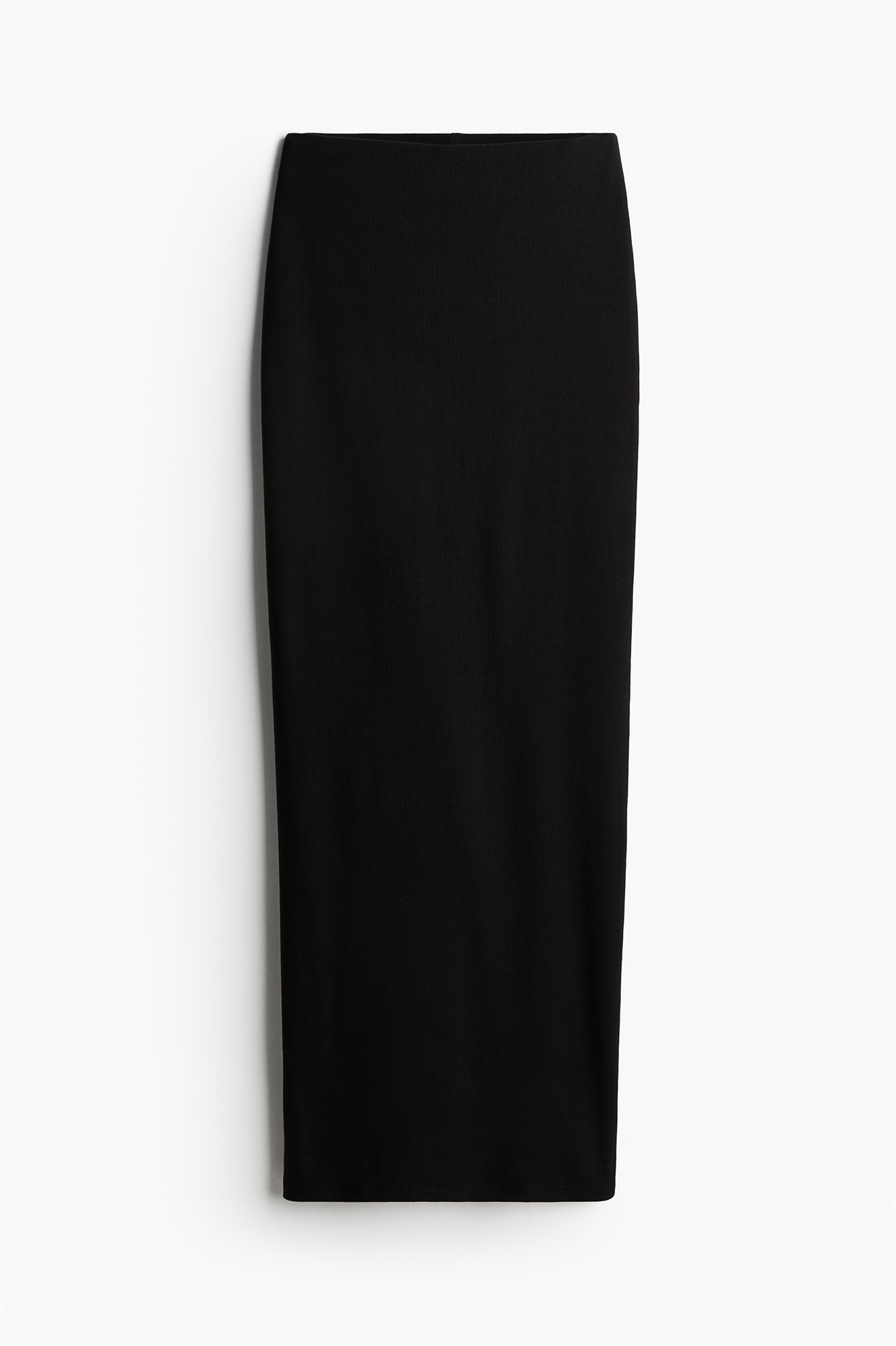 Длинная приталенная юбка из ребристого хлопкового джерси со скрытой резинкой на талии и подол прямого кроя с разрезом сзади.