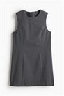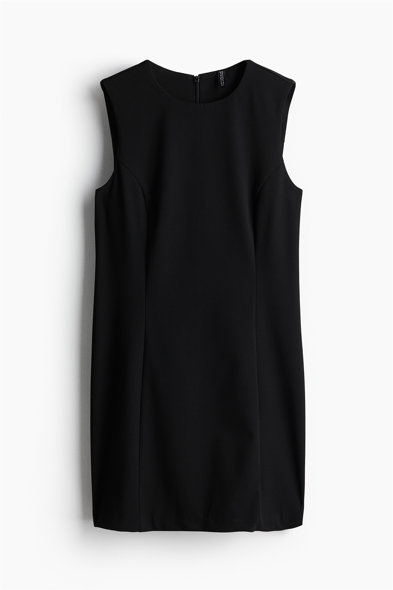 Короткое приталенное платье без рукавов из саржи со швами "принцесса" спереди и сзади для придания силуэту привлекательности. Круглый вырез, потайная застежка-молния сзади и прямой подол. Без подкладки.