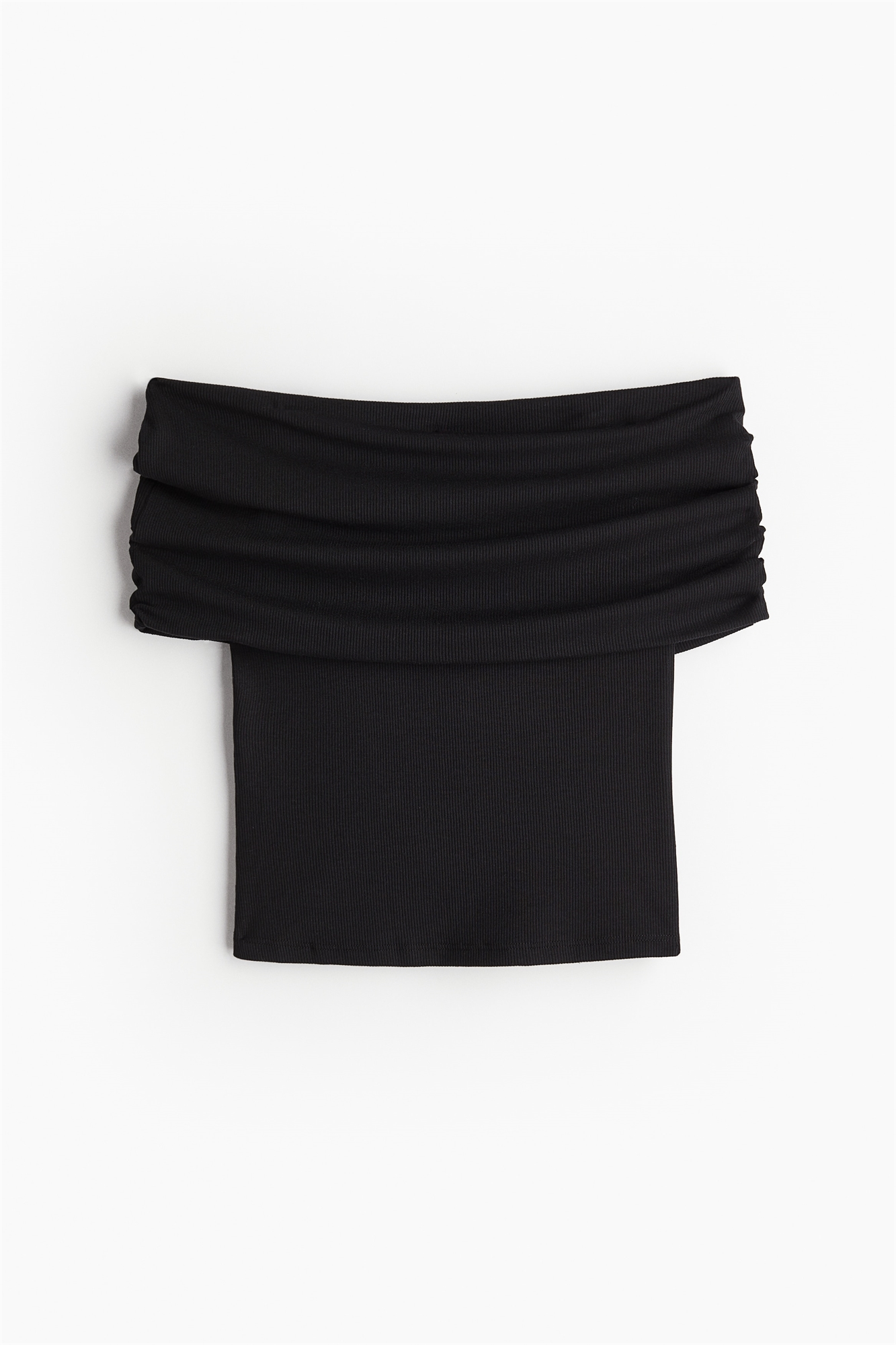 Облегающий топ без плеч из ребристого трикотажа с широкой складкой в верхней части.