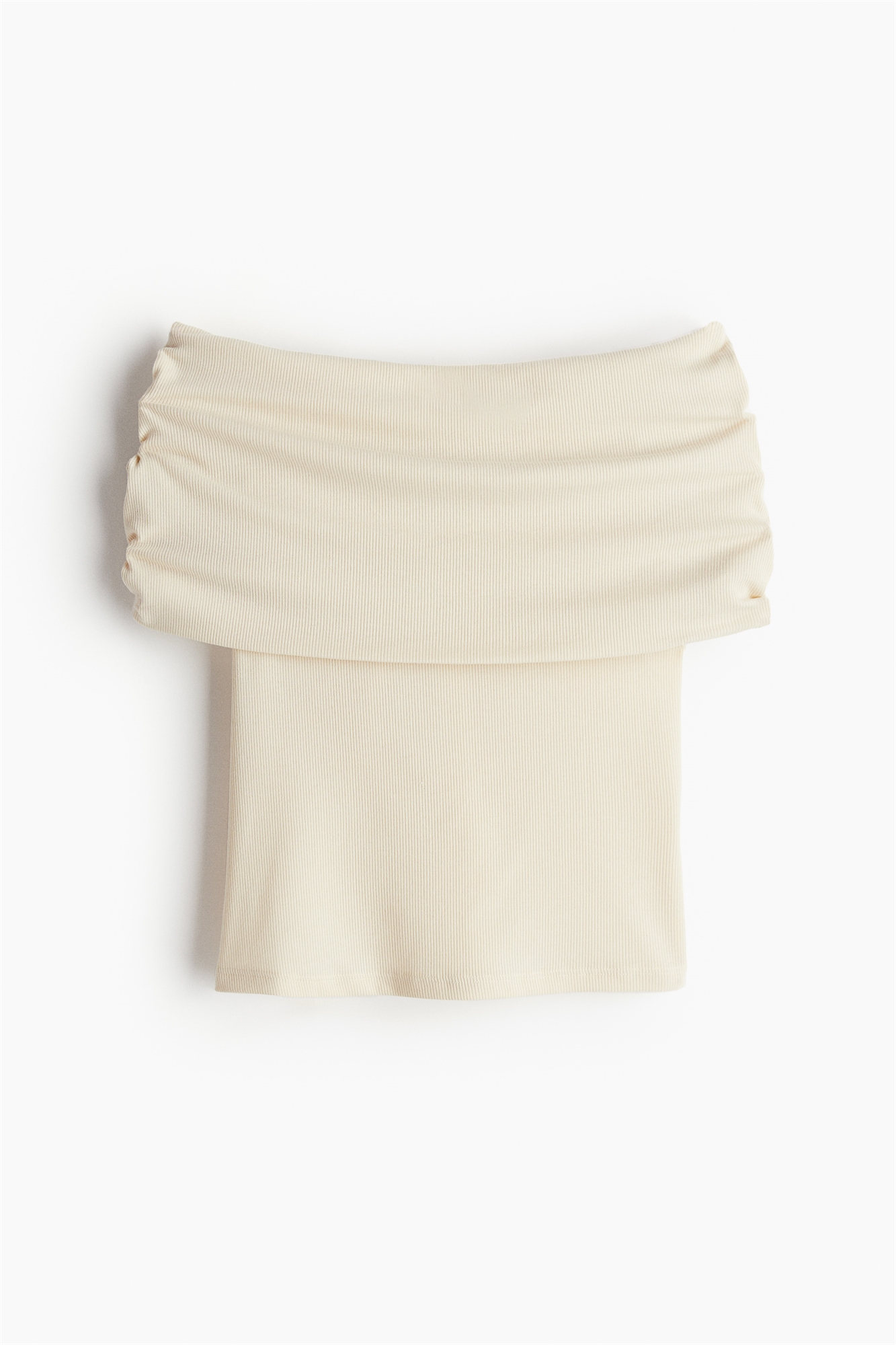 Облегающий топ без плеч из ребристого трикотажа с широкой складкой в верхней части.