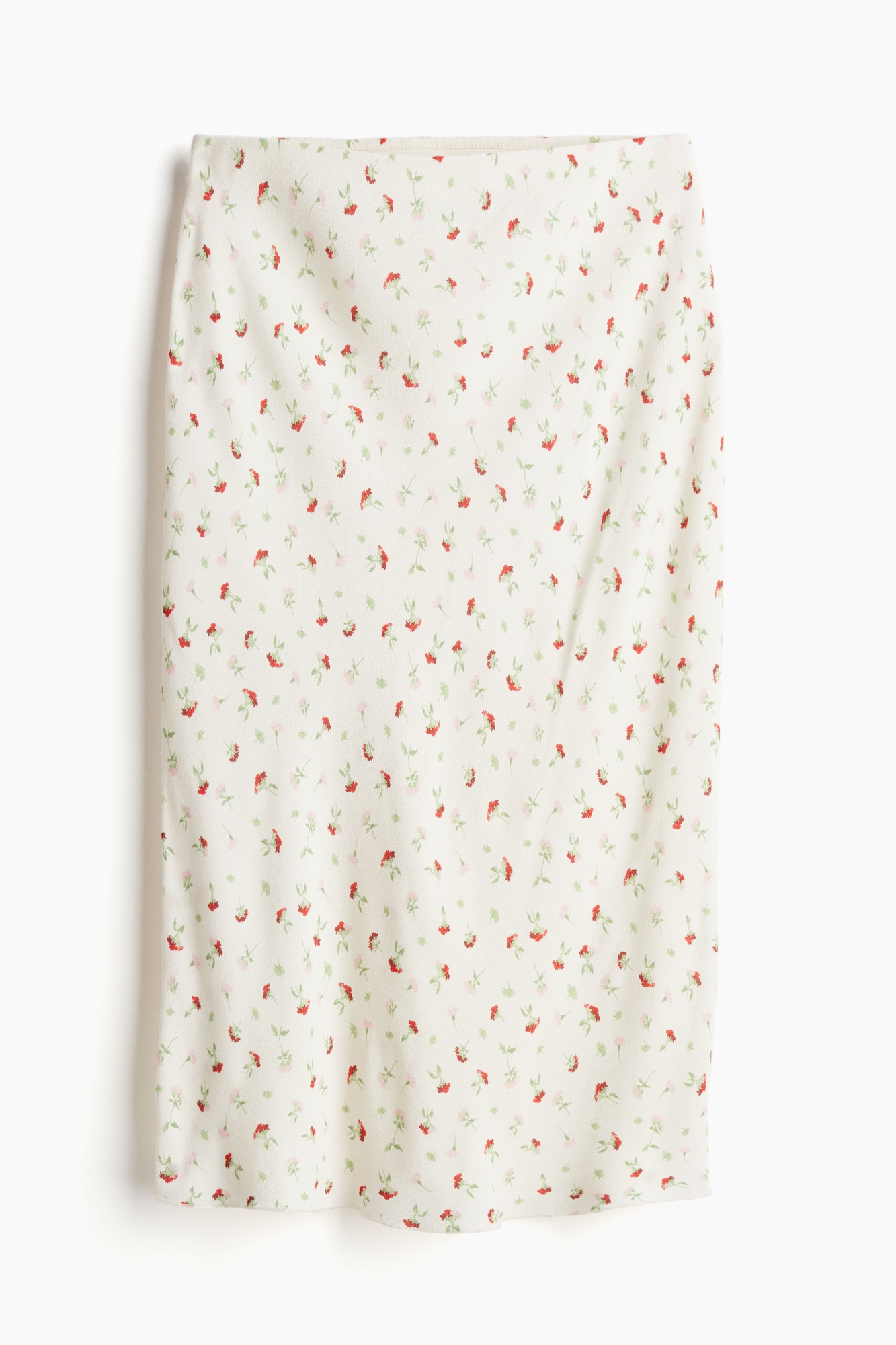 Юбка длиной до колена из тканого материала со скрытой эластичной резинкой на талии и подолом, обработанным оверлоком. Без подкладки.