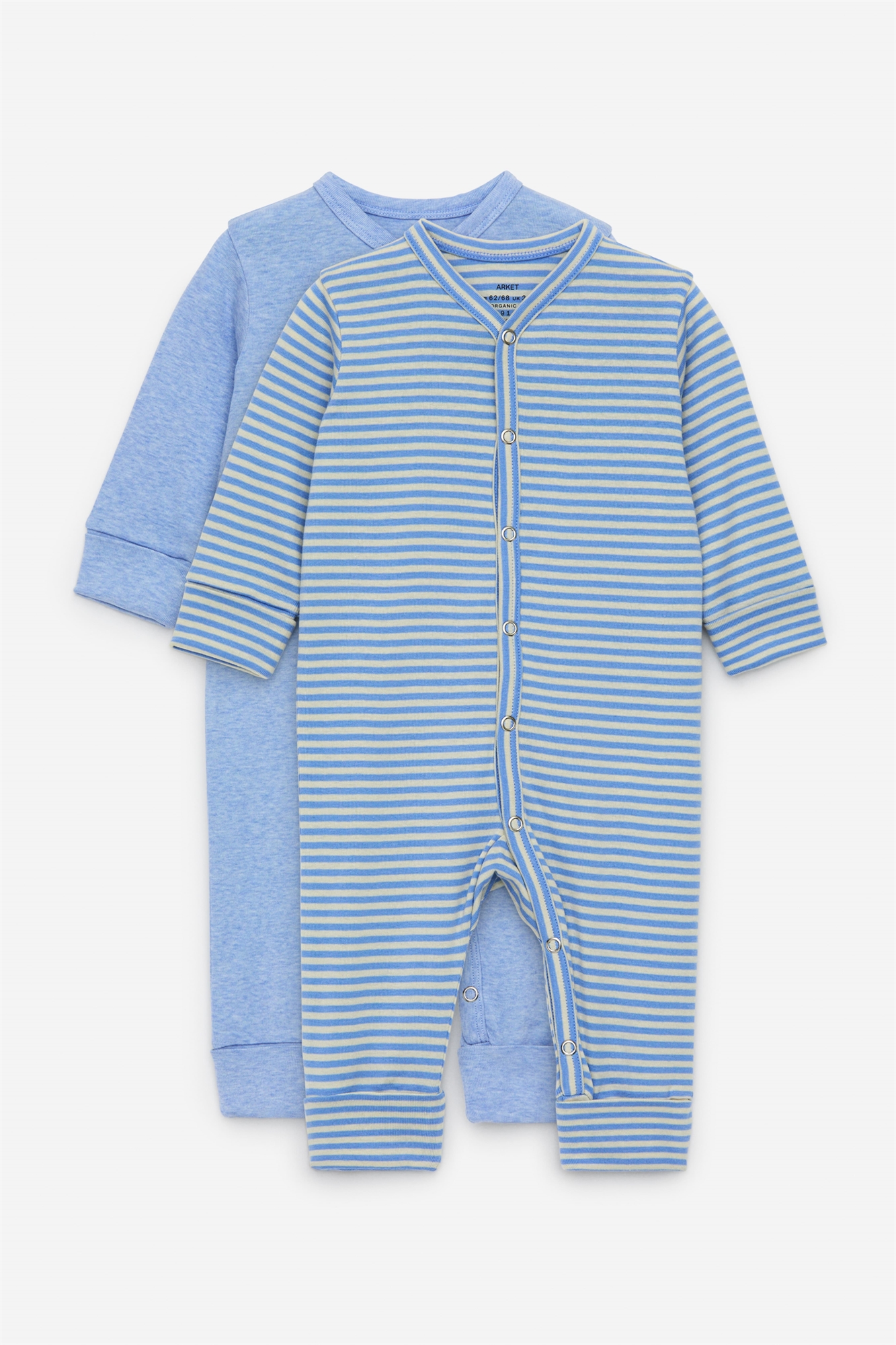Пижамный комбинезон из хлопкового джерси. Мягкие и удобные детали с откидными манжетами на рукавах и ногах. Застежка на пуговицах сверху донизу облегчает одевание. Продается в комплекте из двух штук.
