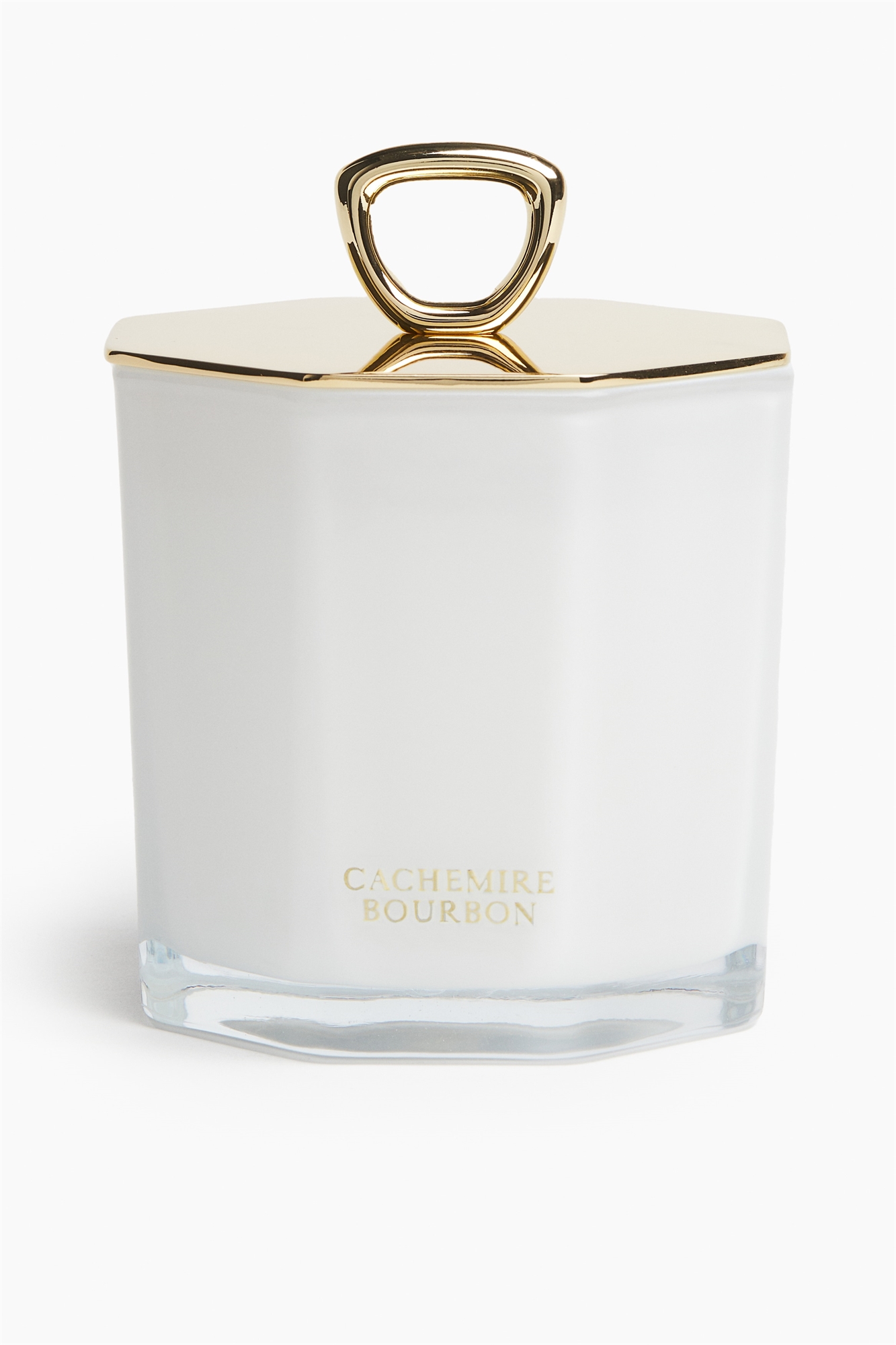 Ароматическая свеча в элегантном стеклянном держателе с крышкой с ручкой сверху. Диаметр 11,8 см. Высота 12,6 см. Время горения 35 часов.