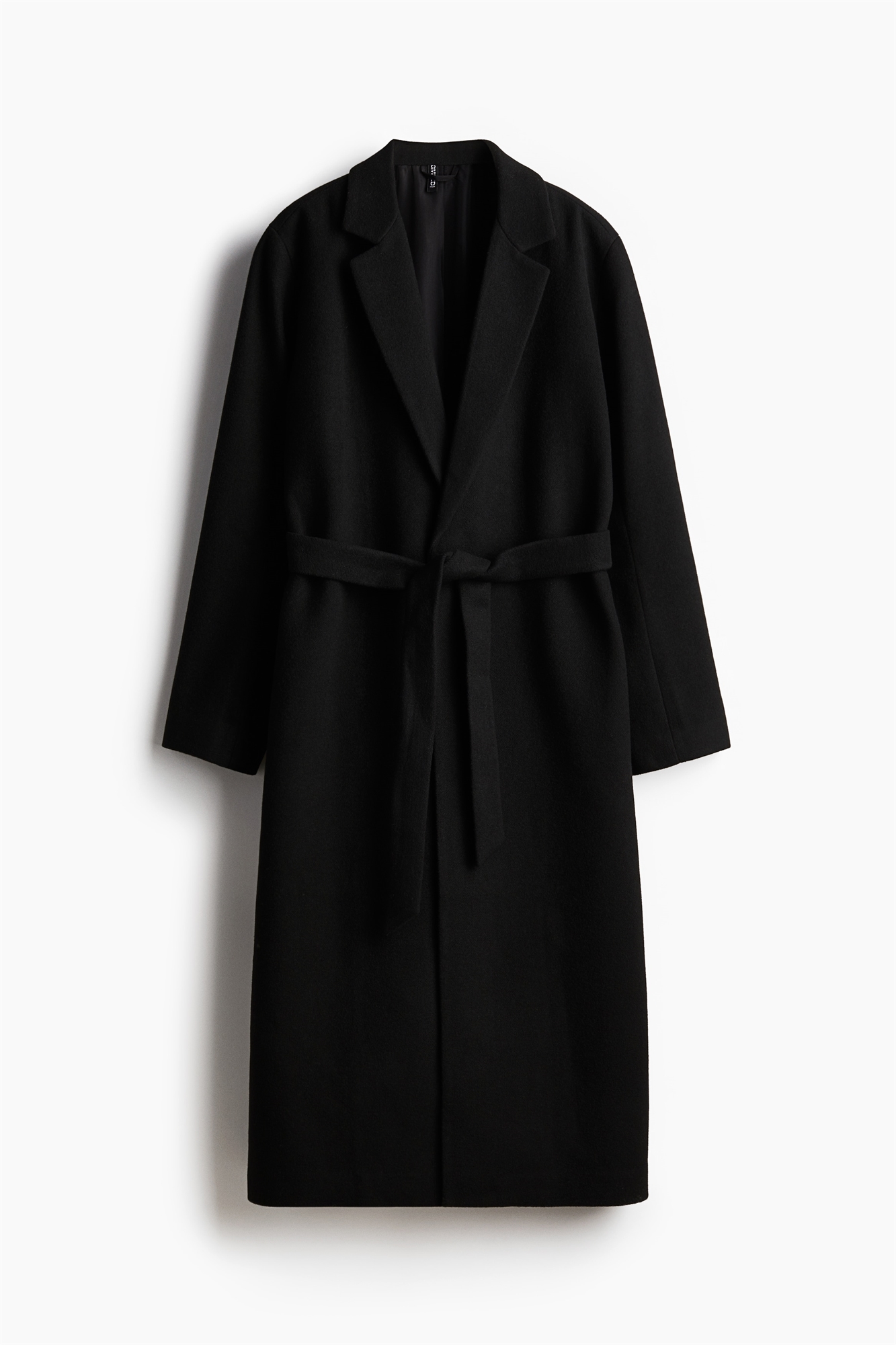 Пальто длиной до колена из саржи с матовой отделкой. Лацканы с вырезами, съемный пояс на талии и один вентиляционный канал на спине. Без застежек. На подкладке.