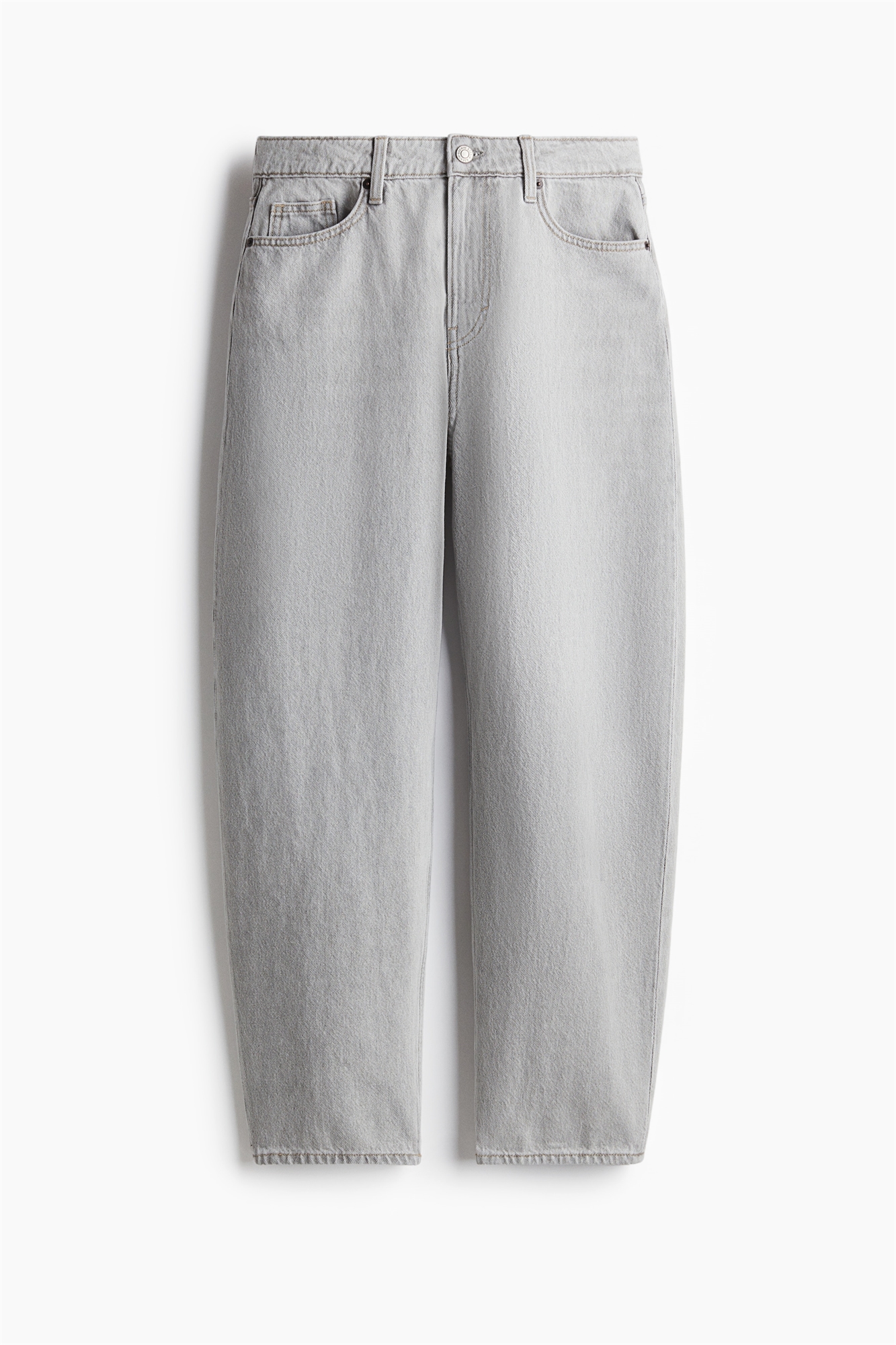 Джинсы с 5 карманами из жесткого хлопкового денима, который сначала кажется упругим, но затем смягчается и ослабевает при носке. Изогнутая, объемная штанина со свободной посадкой от бедра до бедра, которая сужается к подолу. Высокая талия с ширинкой на молнии и пуговице. Регулярная длина, рассчитанная на то, чтобы доходить до верхней части стопы с минимальной или нулевой стопой. Непринужденная и прохладная джинсовая одежда.