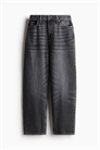 Джинсы с 5 карманами из жесткого хлопкового денима, который сначала кажется упругим, но затем смягчается и ослабевает при носке. Изогнутая, объемная штанина со свободной посадкой от бедра до бедра, которая сужается к подолу. Высокая талия с ширинкой на молнии и пуговице. Регулярная длина, рассчитанная на то, чтобы доходить до верхней части стопы с минимальной или нулевой стопой. Непринужденная и прохладная джинсовая одежда.