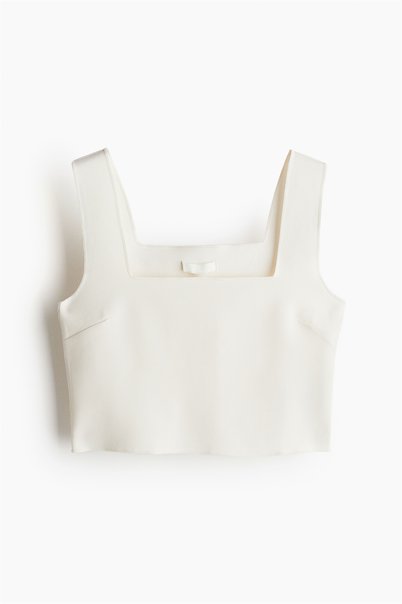 Обрезанный приталенный жилет-топ из плотного джерси с оверлочными краями. Квадратный вырез, широкие бретели и прямой подол.