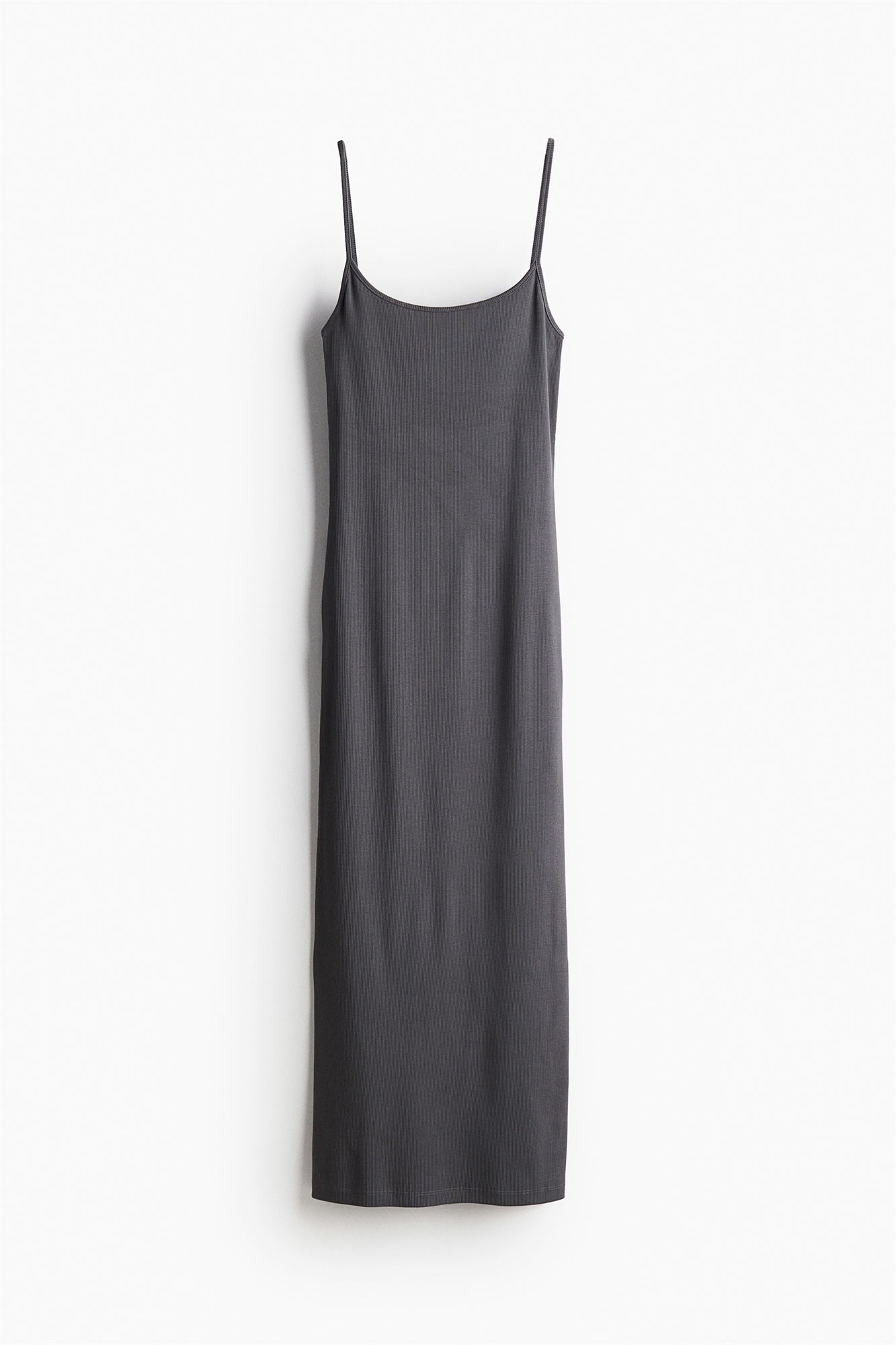 Длинное приталенное платье на бретелях из мягкого хлопкового джерси.