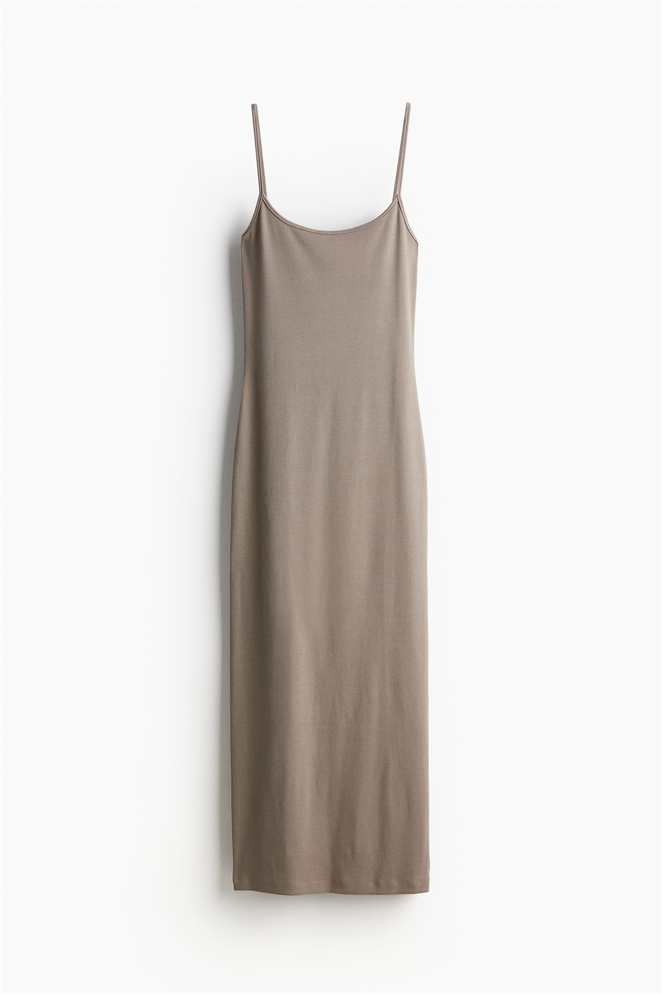 Длинное приталенное платье на бретелях из мягкого хлопкового джерси.